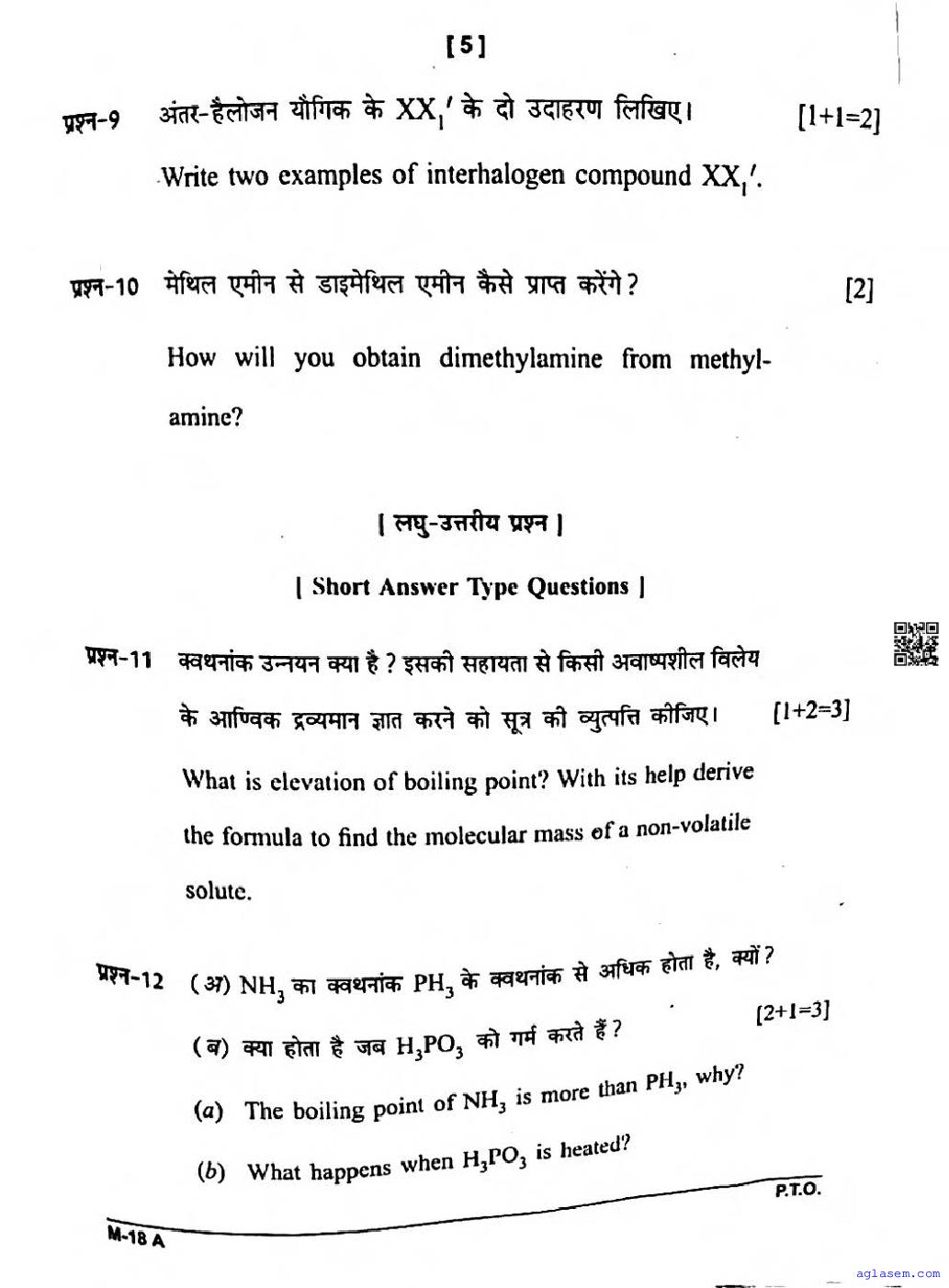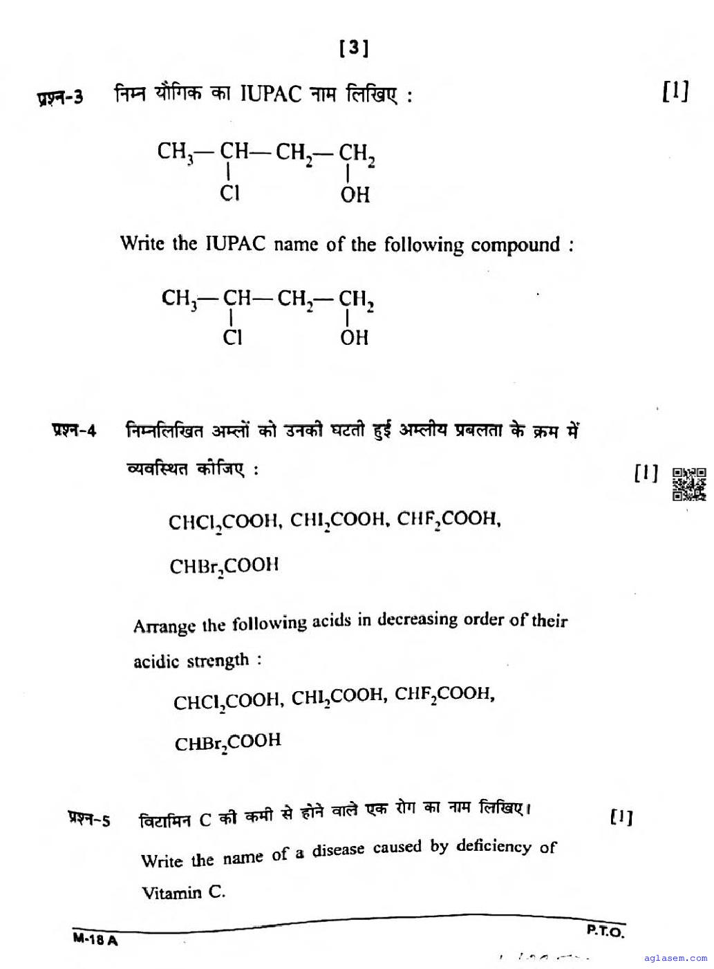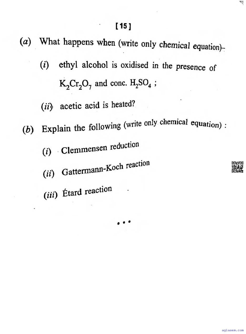 CG Board Class 12 Chemistry Question Paper 2026 is now available. You can download the CGBSE class 12th Chemistry Question Paper PDF from here on aglasem. This CG Board Class 12 Question Paper contains actual questions asked in Chemistry subject test in previous years with solutions. By solving this Chemistry paper, you wil increase your chances of getting full marks in Chhattisgarh Board exams of class 12th.