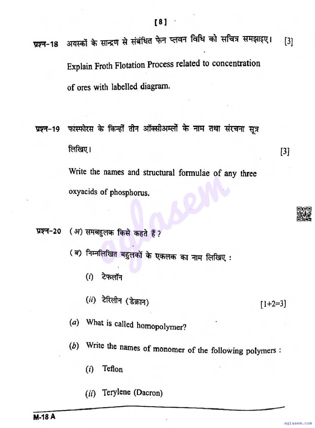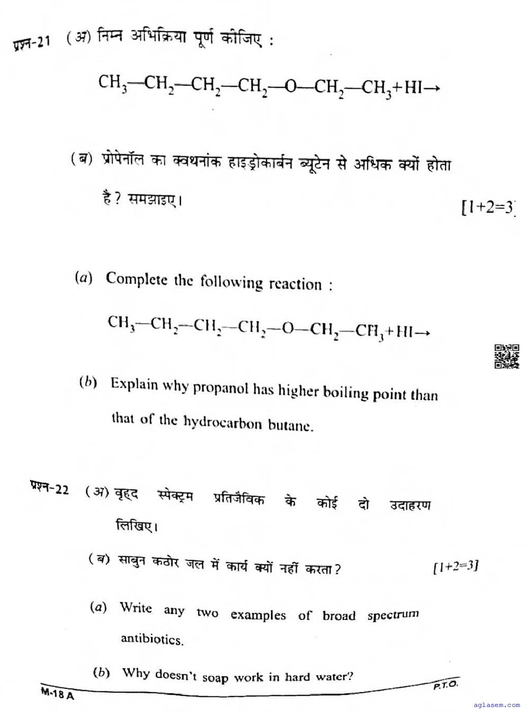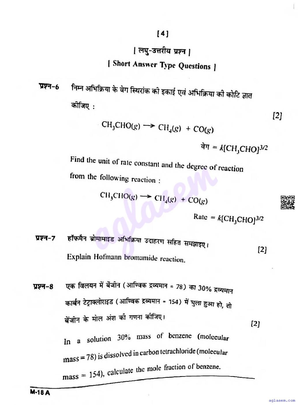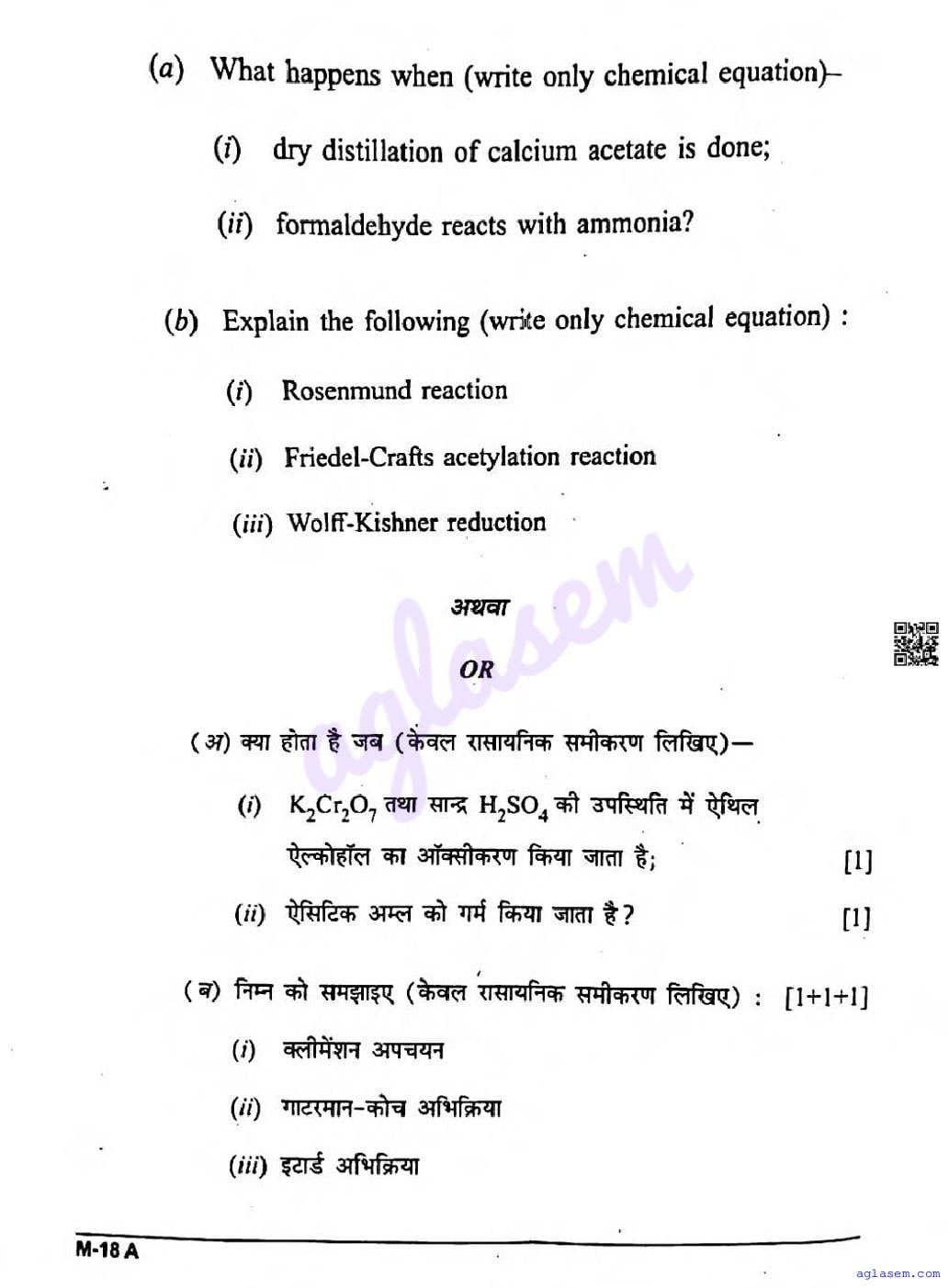 CG Board Class 12 Chemistry Question Paper 2026 is now available. You can download the CGBSE class 12th Chemistry Question Paper PDF from here on aglasem. This CG Board Class 12 Question Paper contains actual questions asked in Chemistry subject test in previous years with solutions. By solving this Chemistry paper, you wil increase your chances of getting full marks in Chhattisgarh Board exams of class 12th.