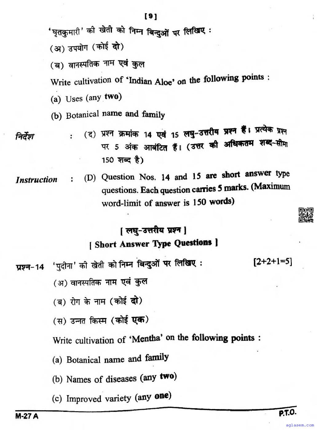 | Educational Resource Here | CGBSE Question Paper of Class 12 Crop Production & Horticulture |
