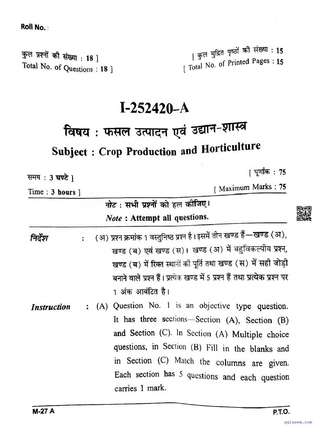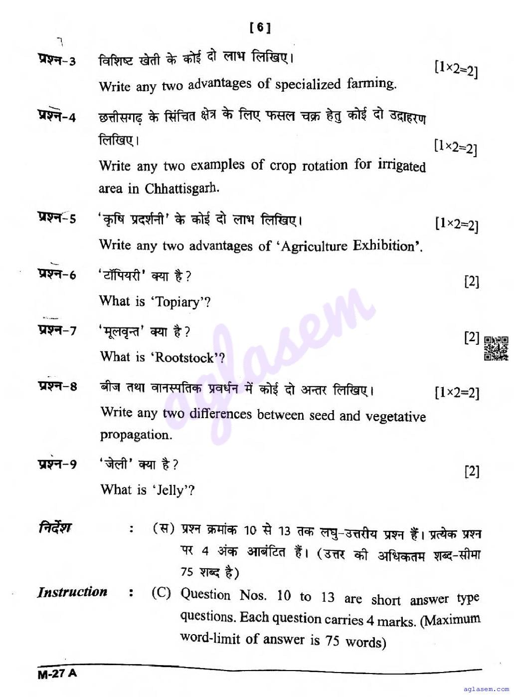 CG Board Class 12 Crop Production & Horticulture Question Paper 2026 is now available. You can download the CGBSE class 12th Crop Production & Horticulture Question Paper PDF from here on aglasem. This CG Board Class 12 Question Paper contains actual questions asked in Crop Production & Horticulture subject test in previous years with solutions. By solving this Crop Production & Horticulture paper, you wil increase your chances of getting full marks in Chhattisgarh Board exams of class 12th.