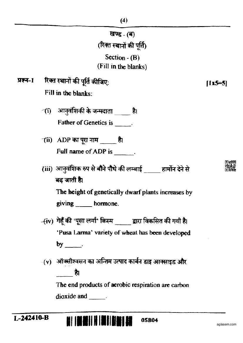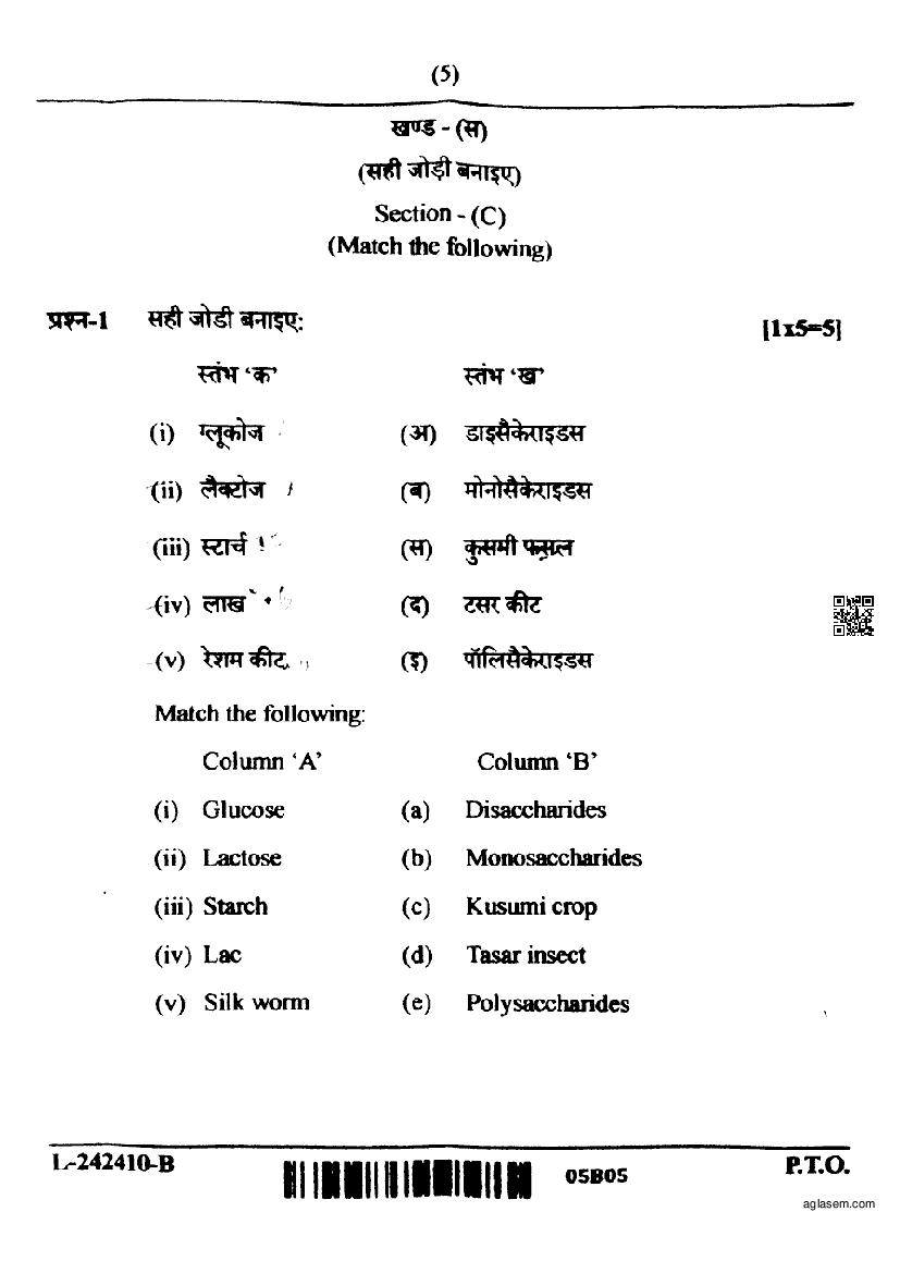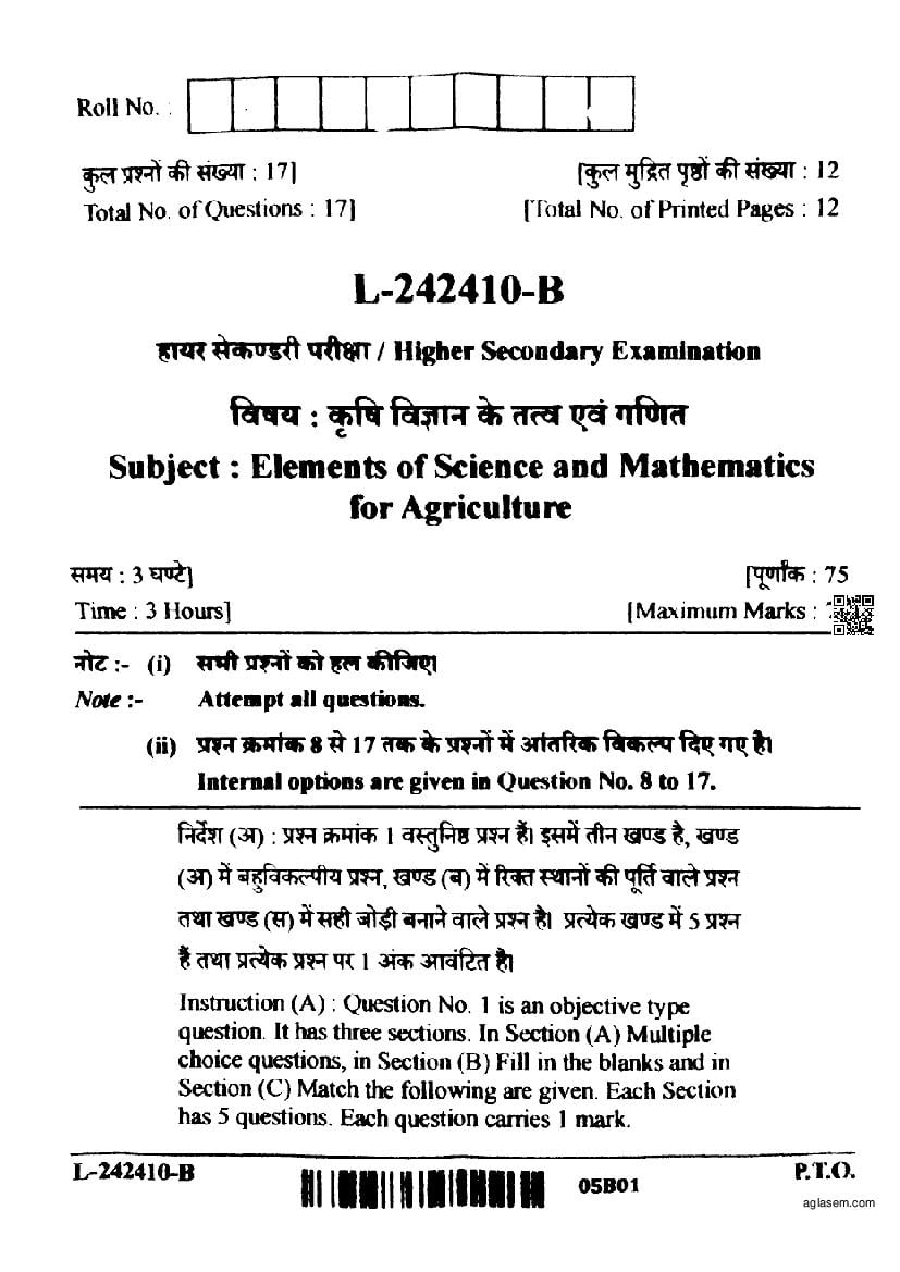 CG Board Class 12 Elements of Science and Mathematics for Agriculture Question Paper 2024 is now available. You can download the CGBSE class 12th Elements of Science and Mathematics for Agriculture Question Paper PDF from here on aglasem. This CG Board Class 12 Question Paper contains actual questions asked in Elements of Science and Mathematics for Agriculture subject test in previous years with solutions. By solving this Elements of Science and Mathematics for Agriculture paper, you wil increase your chances of getting full marks in Chhattisgarh Board exams of class 12th.