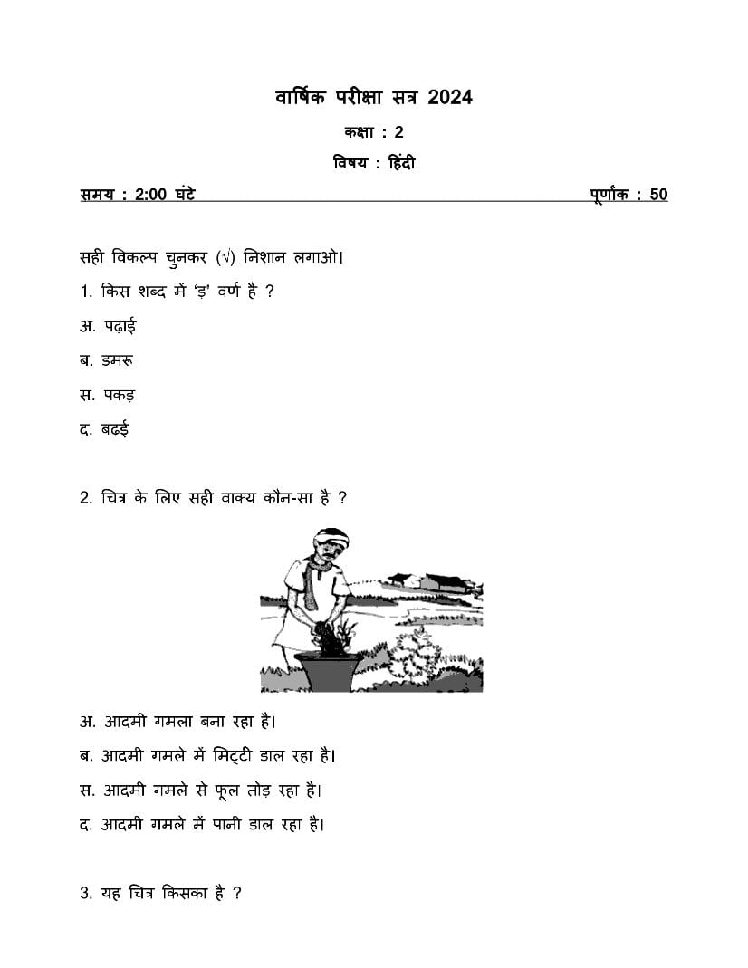 CG Board Class 2 Question Paper 2024 Hindi View Download