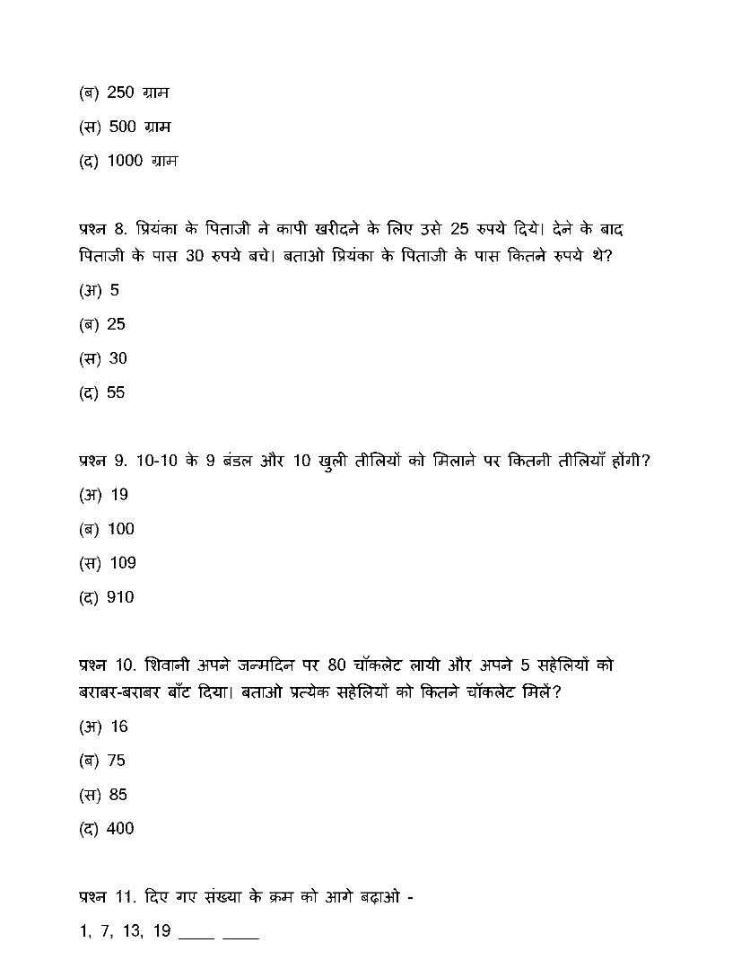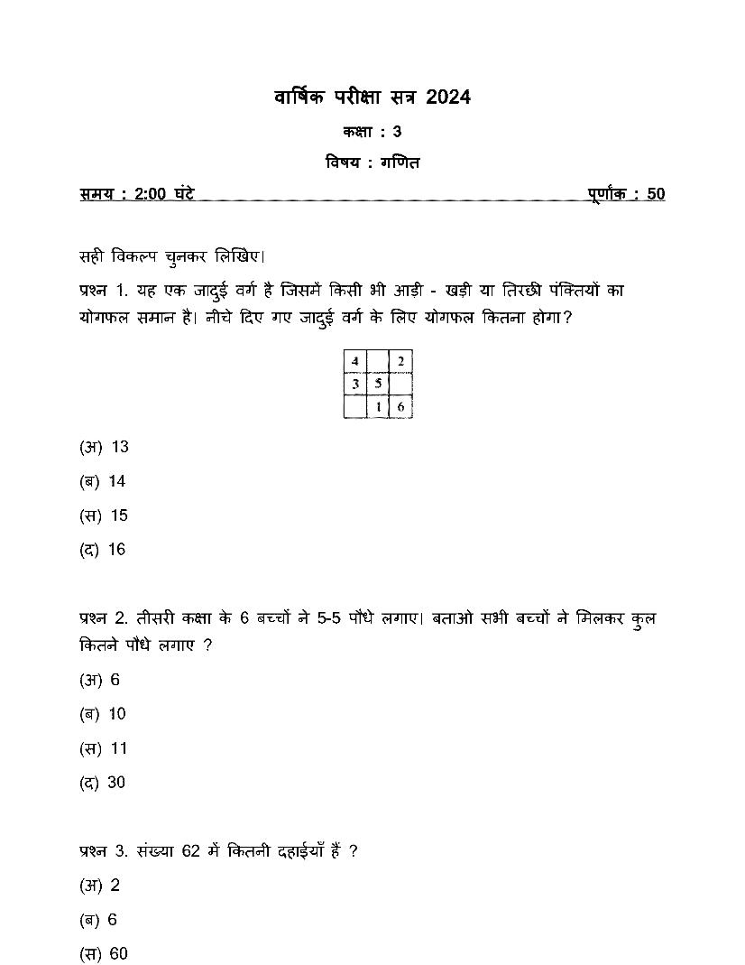 | Educational Resource Here | CGBSE Question Paper of Class 3 Maths |