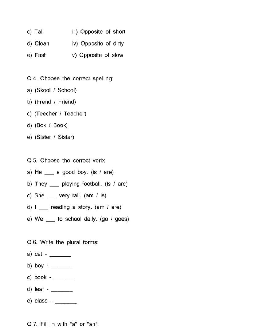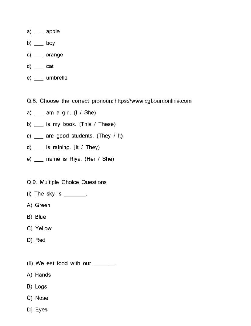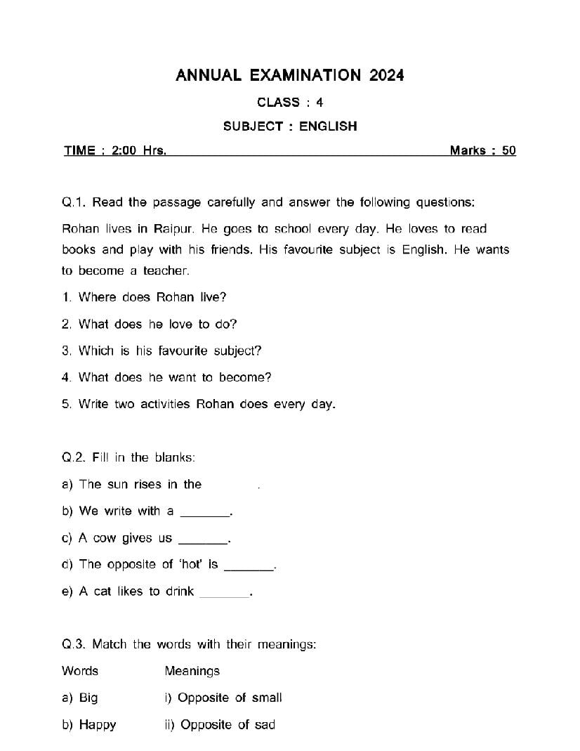 The CG Board Previous Year Question Paper for class 4 English is as follows.