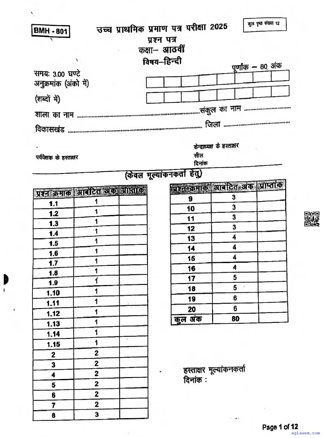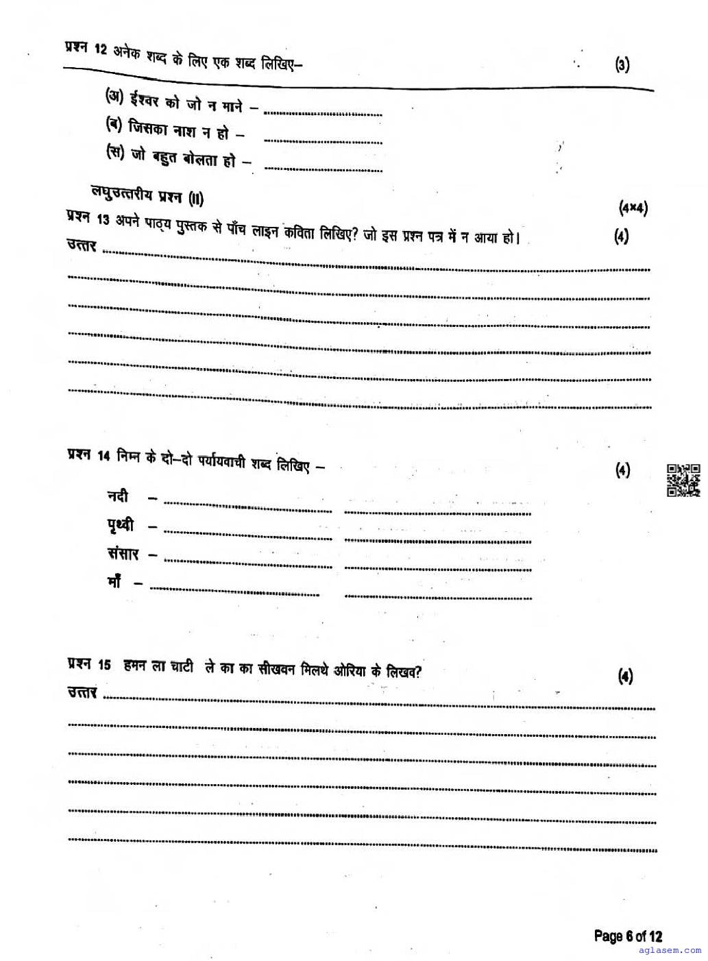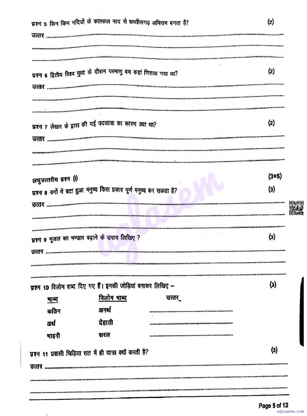 CG Board Class 8 Hindi Question Paper 2026 is now available. You can download the CGBSE class 8th Hindi Question Paper PDF from here on aglasem. This CG Board Class 8 Question Paper contains actual questions asked in Hindi subject test in previous years with solutions. By solving this Hindi paper, you wil increase your chances of getting full marks in Chhattisgarh Board exams of class 8th.