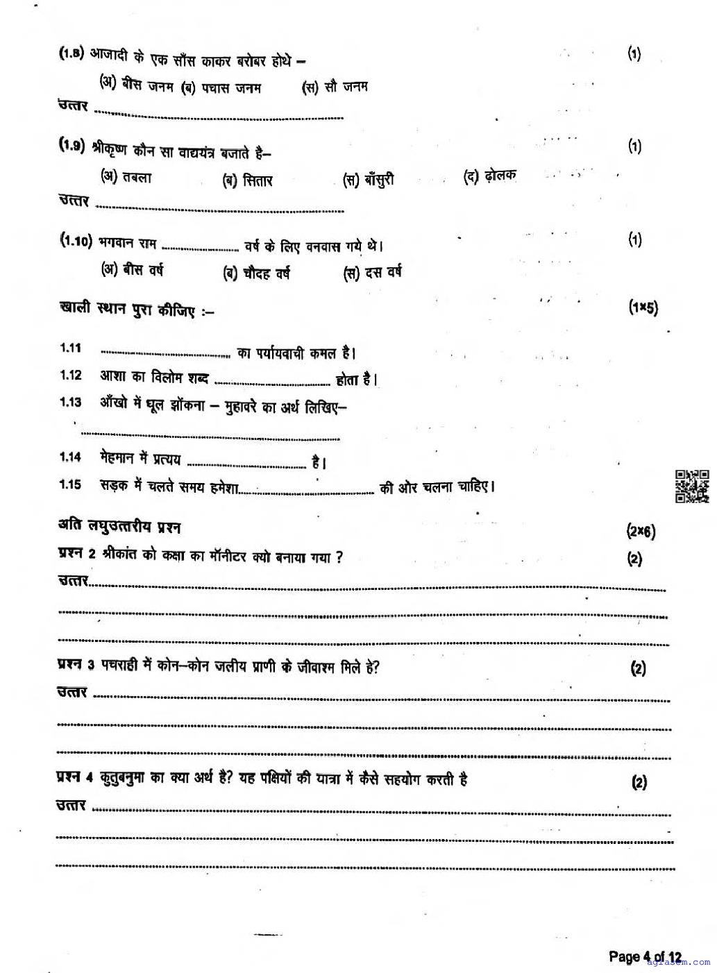 CG Board Class 8 Question Paper 2025 Hindi View Download