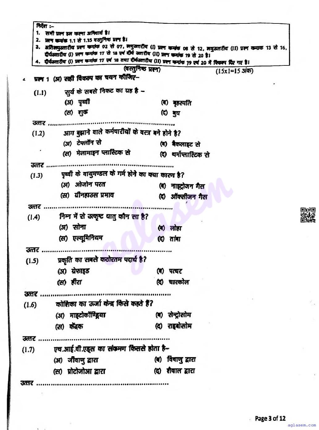 CG Board Class 8 Science Question Paper 2026 is now available. You can download the CGBSE class 8th Science Question Paper PDF from here on aglasem. This CG Board Class 8 Question Paper contains actual questions asked in Science subject test in previous years with solutions. By solving this Science paper, you wil increase your chances of getting full marks in Chhattisgarh Board exams of class 8th.