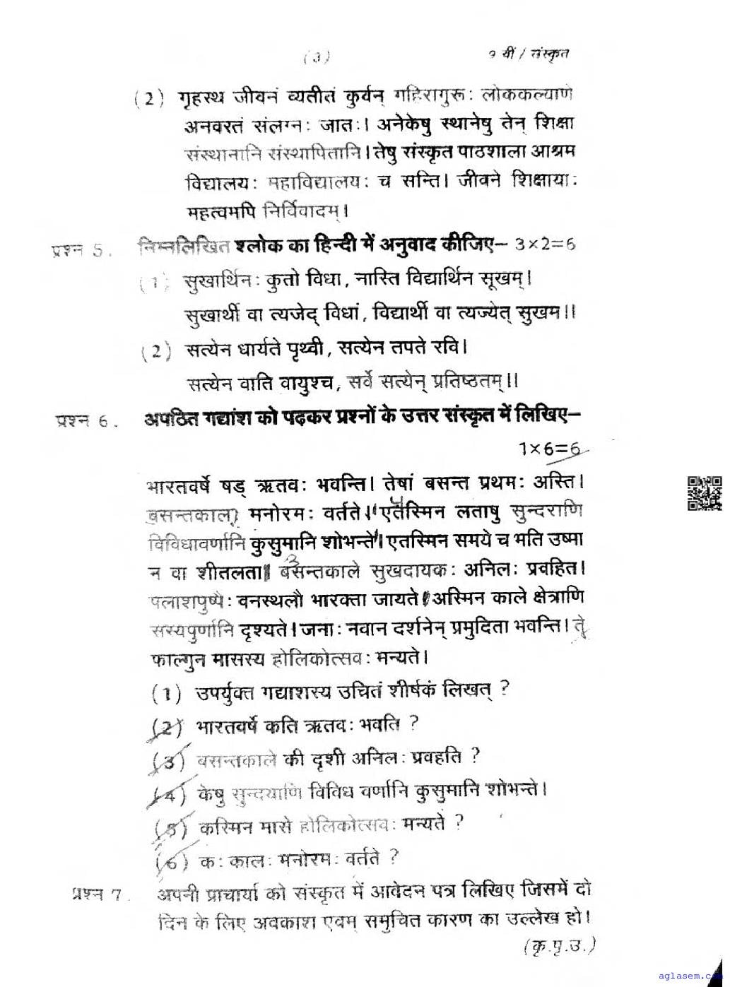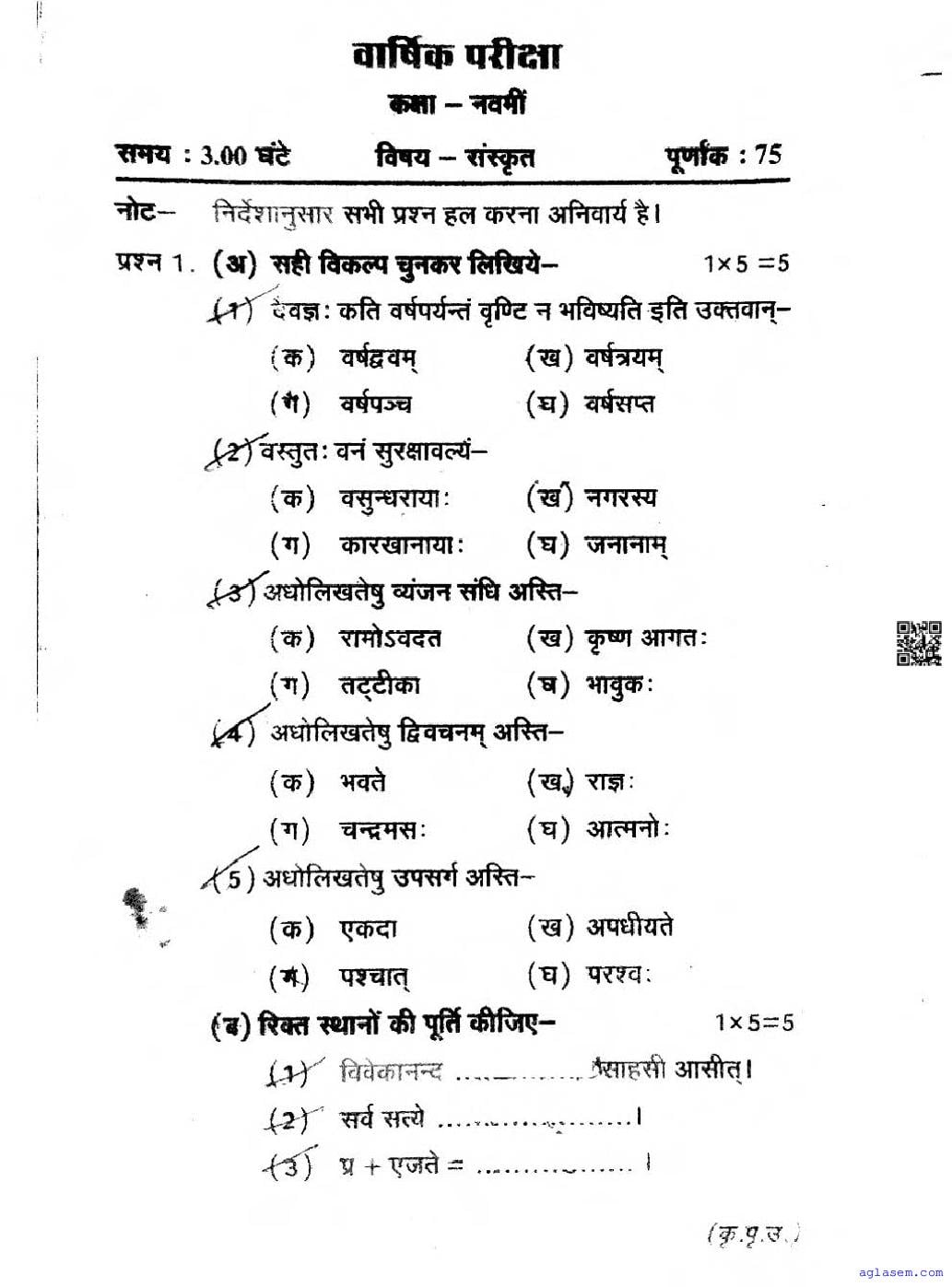 CG Board Class 9 Sanskrit Question Paper 2026 is now available. You can download the CGBSE class 9th Sanskrit Question Paper PDF from here on aglasem. This CG Board Class 9 Question Paper contains actual questions asked in Sanskrit subject test in previous years with solutions. By solving this Sanskrit paper, you wil increase your chances of getting full marks in Chhattisgarh Board exams of class 9th.