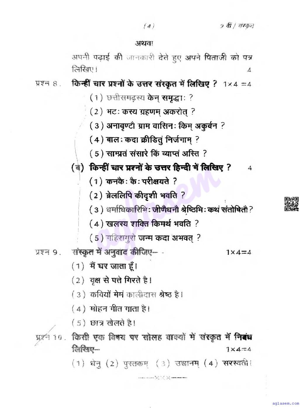 | Educational Resource Here | CGBSE Question Paper of Class 9 Sanskrit |