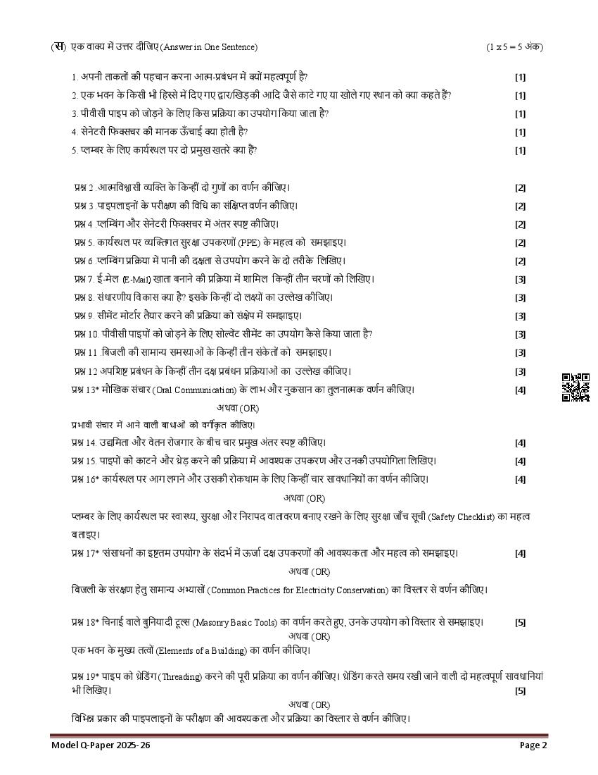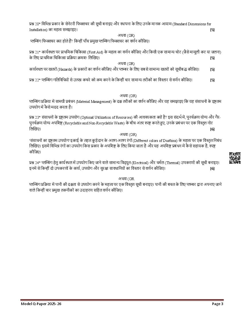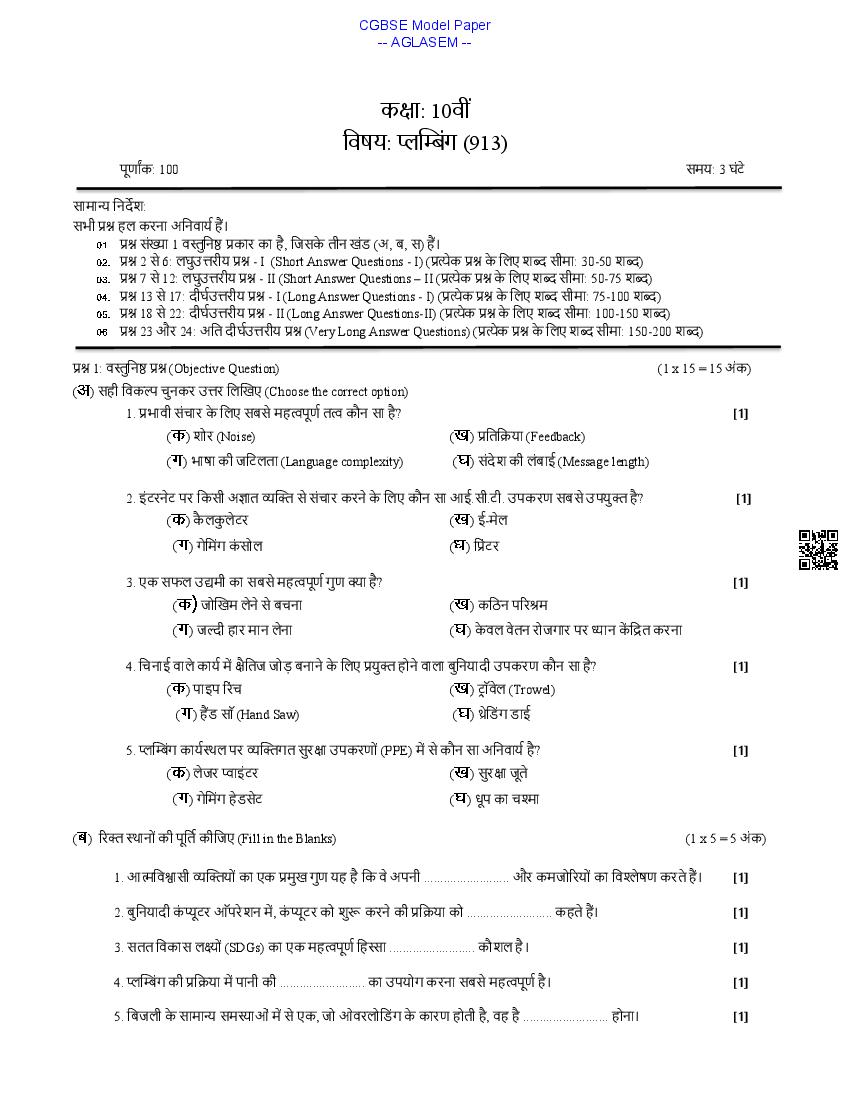 The CGBSE model paper for class 10 Plumbing is as follows.