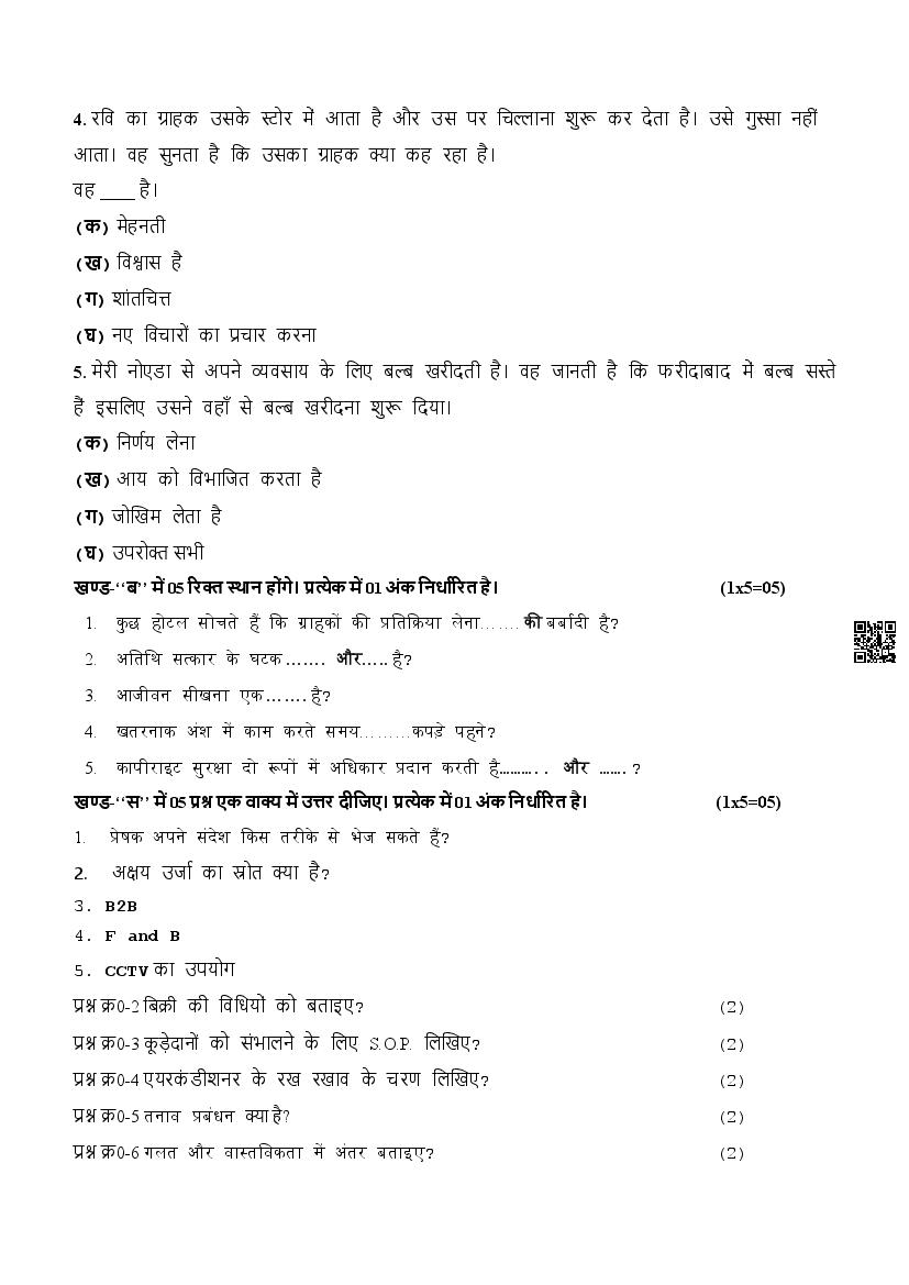 CG Board 10th Sample Paper Tourism and Hospitality View Download