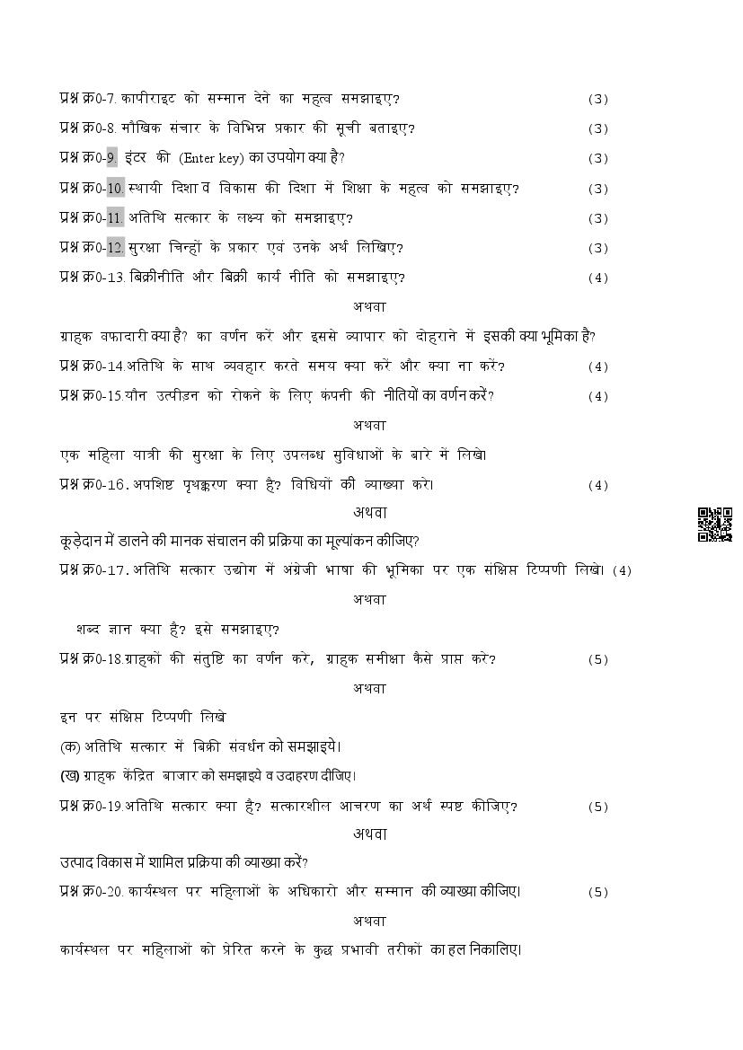 The CGBSE model paper for class 10 Tourism and Hospitality is as follows.