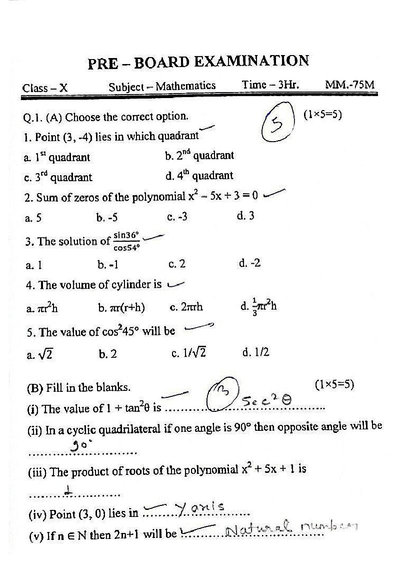 The latest release Chhattisgarh Board Pre-Board Question Paper for 10th Maths PDF is given below.