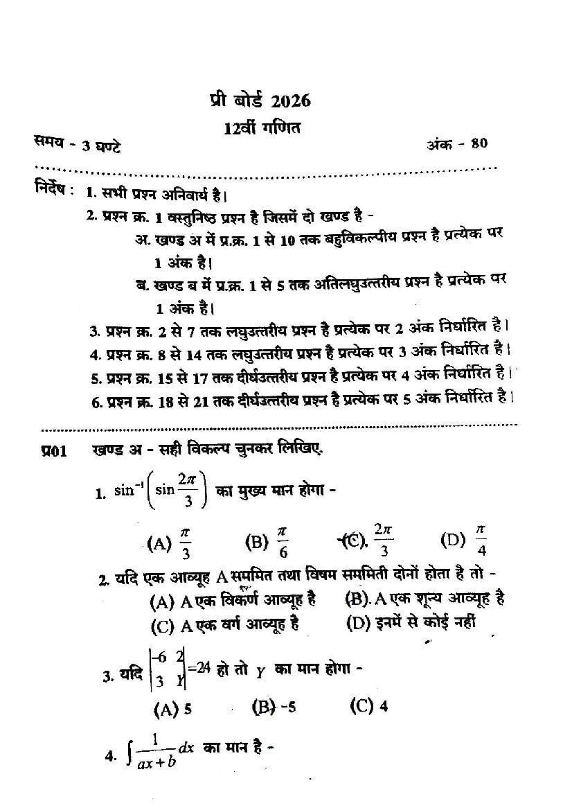 CGBSE Pre Board Maths Question Paper 2026 – More Papers