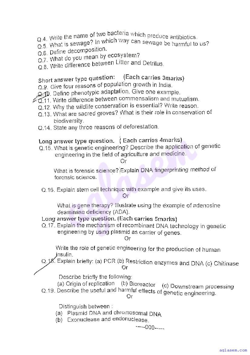 | Educational Resource Here | CGBSE Question Paper of Class 12 Biology |