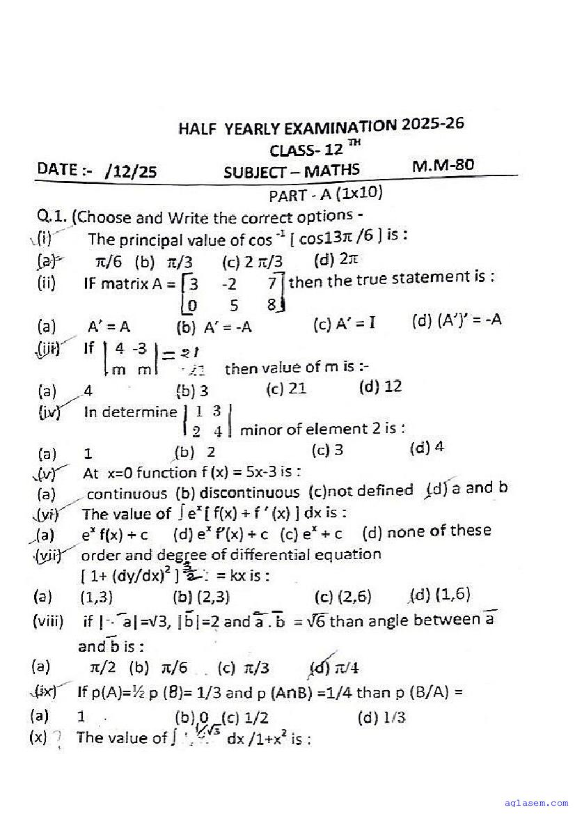 CG Board Class 12 Half Yearly Exam Mathematics Question Paper 2026 is now available. You can download the CGBSE class 12th Half Yearly Exam Mathematics Question Paper PDF from here on aglasem. This CG Board Class 12 Half Yearly Question Paper contains actual questions asked in Mathematics subject Half Yearly test in previous years. By solving this Mathematics paper, you wil increase your chances of getting full marks in Chhattisgarh State Board Half Yearly Exams of class 12th.