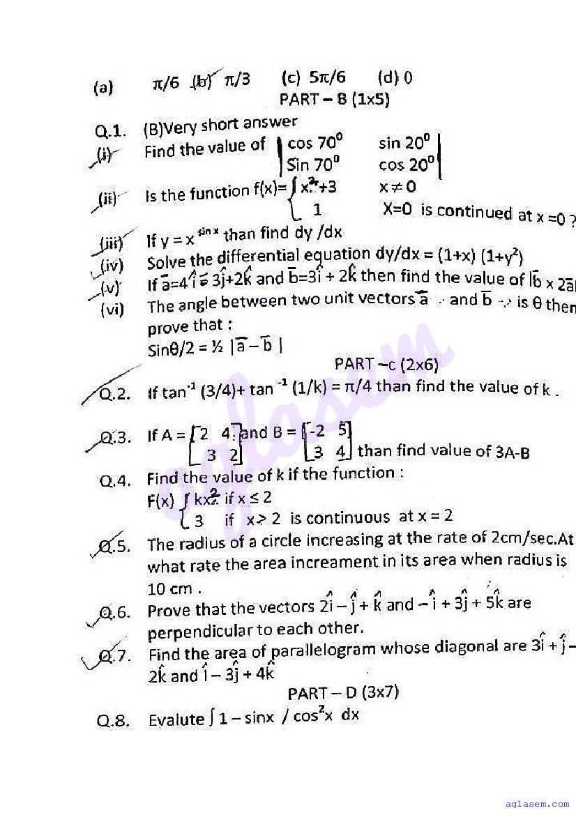 | Educational Resource Here | CGBSE Question Paper of Class 12 Mathematics |
