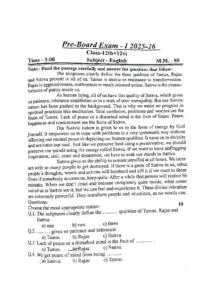 CGBSE Pre Board English Question Paper 2026 – More Papers