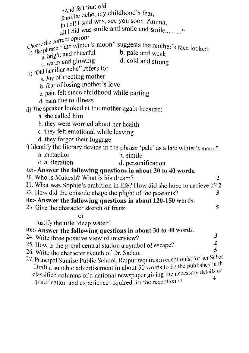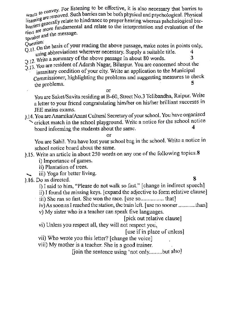 The latest release Chhattisgarh Board Pre-Board Question Paper for 12th English PDF is given below.