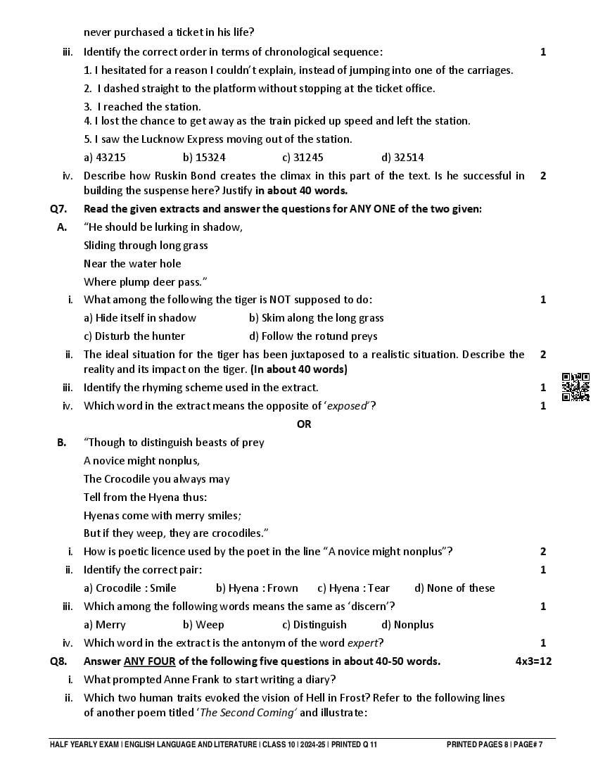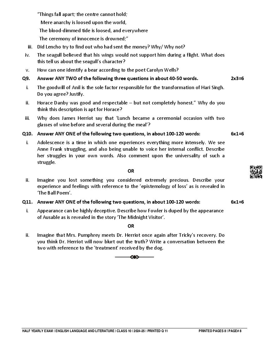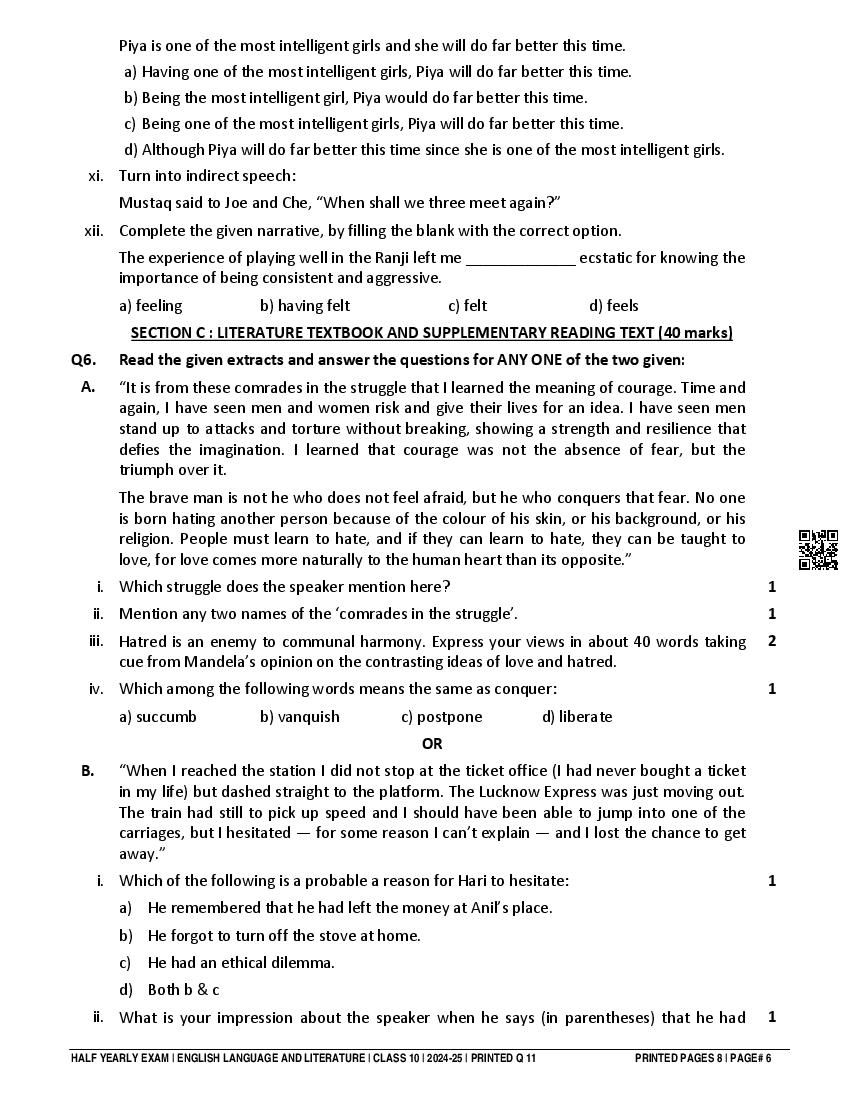 Class 10 Question Paper 2024-25 English (Half Yearly) View Download