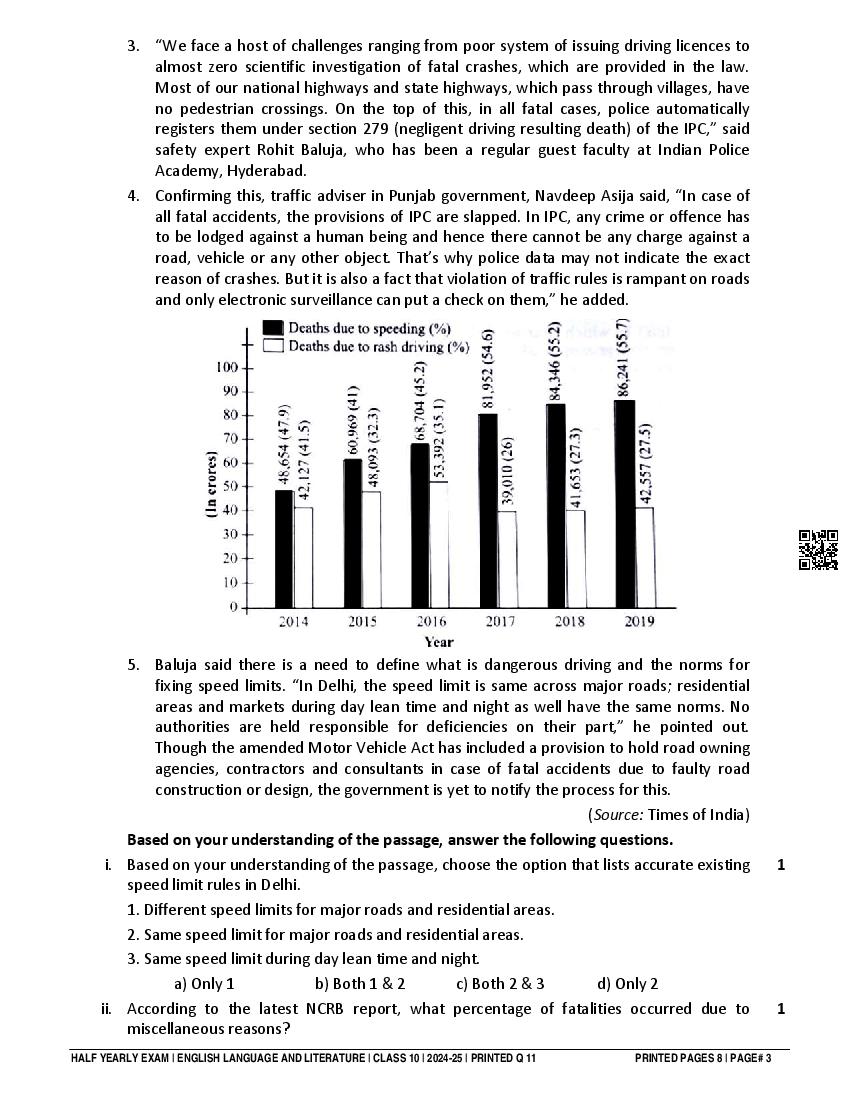 Class 10 English Half Yearly Question Paper 2025 PDF