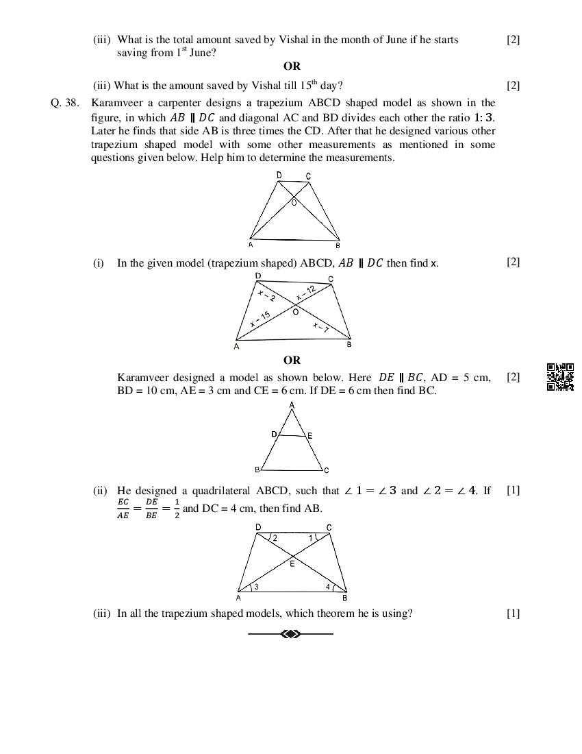 Class 10 Question Paper 2024-25 Maths (Half Yearly) View Download