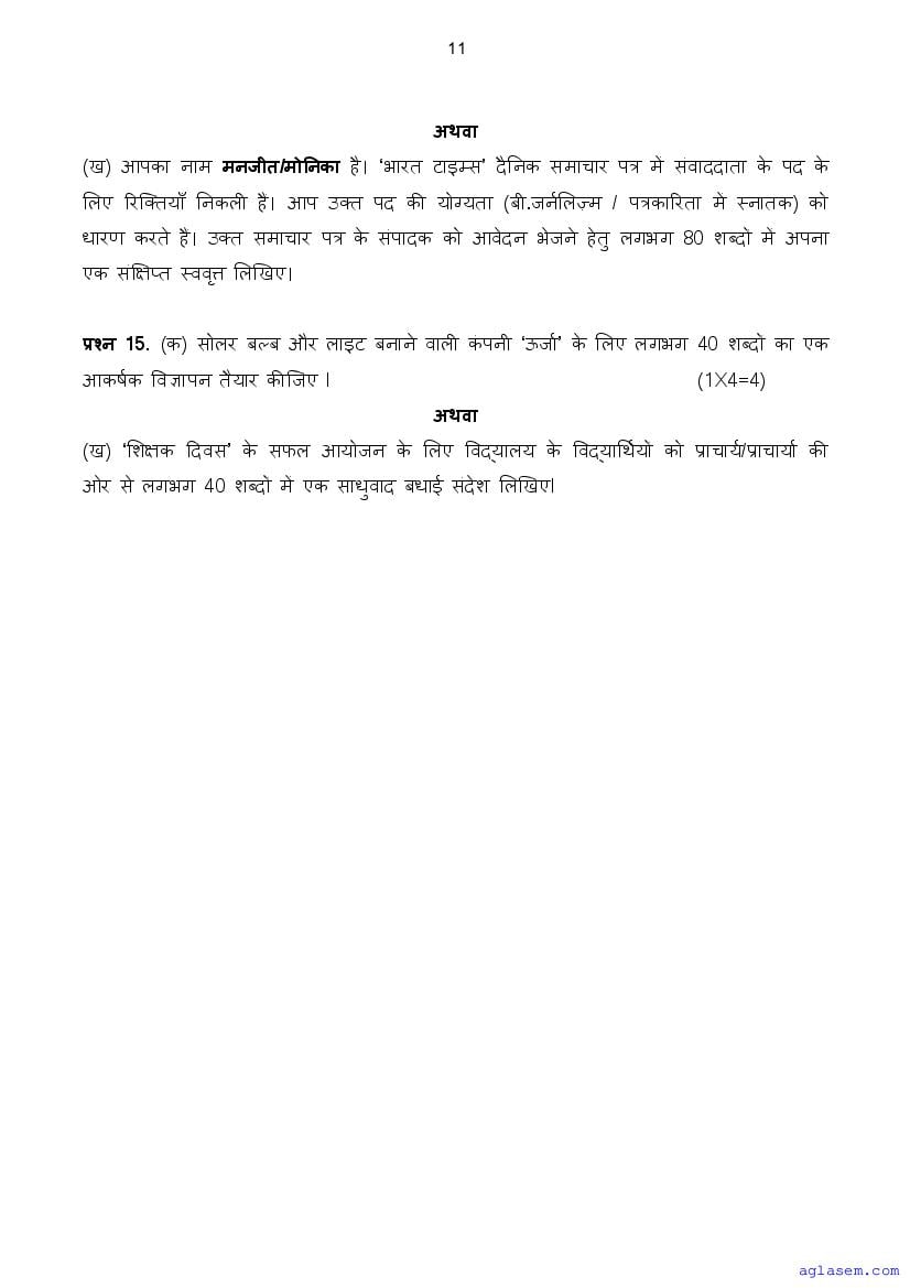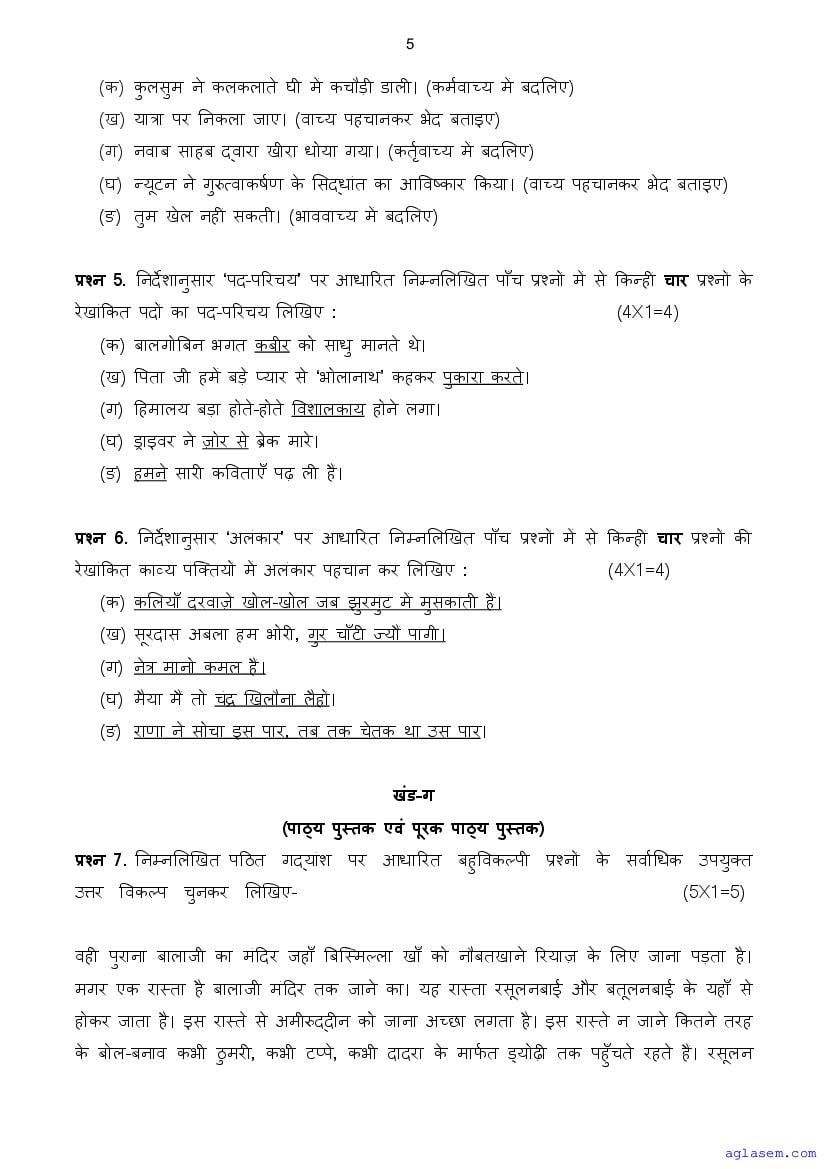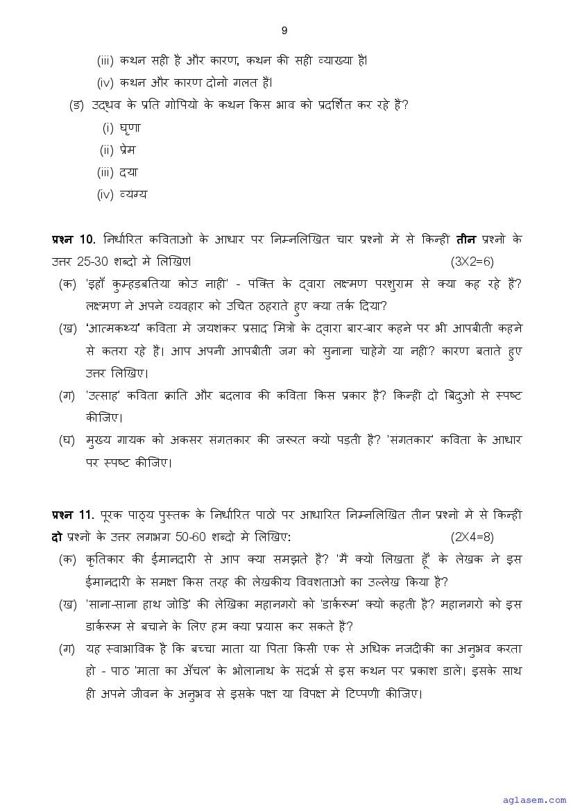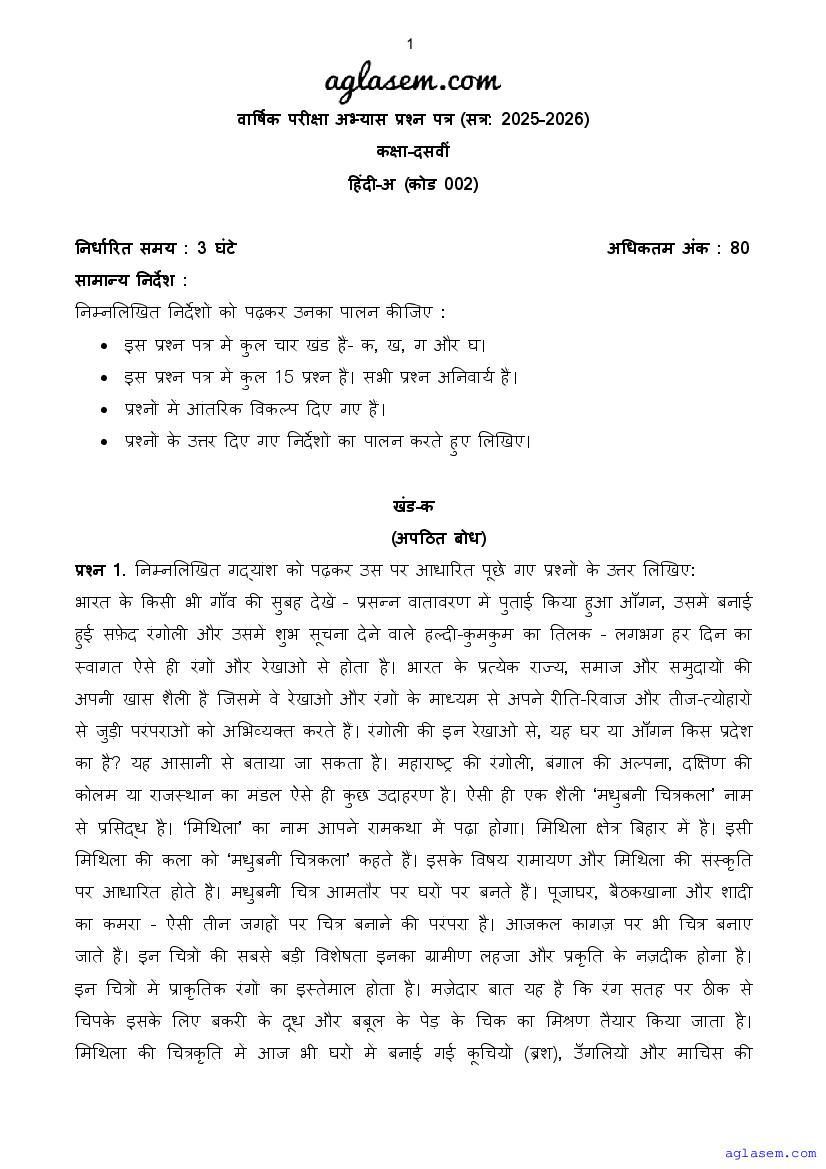 | AglaSem Paper | Class 10 Sample Paper of Hindi |