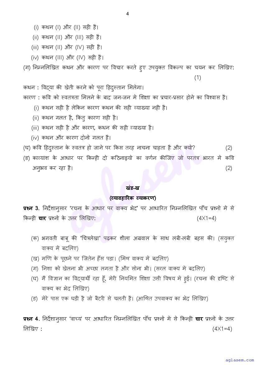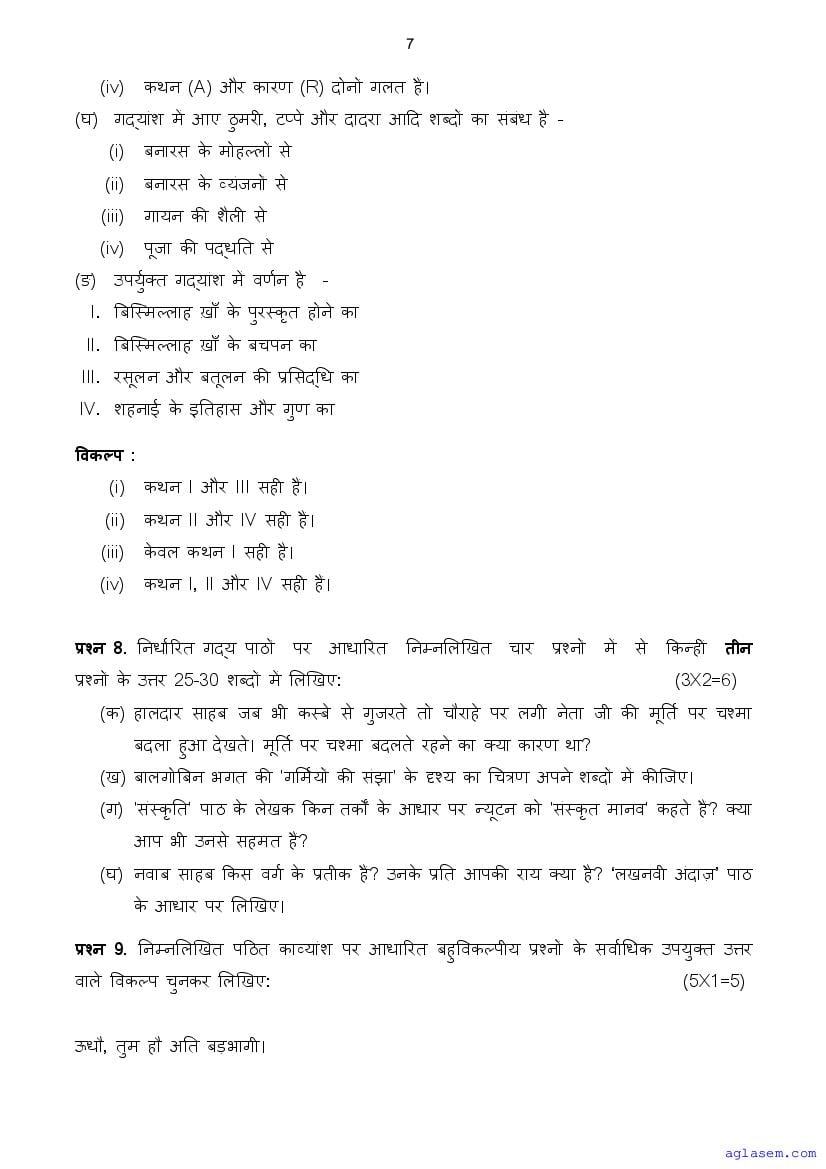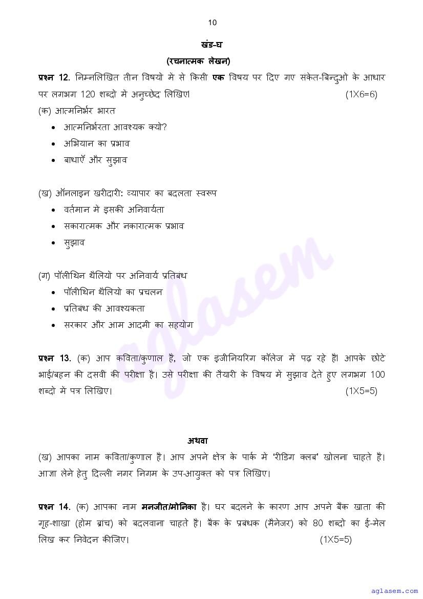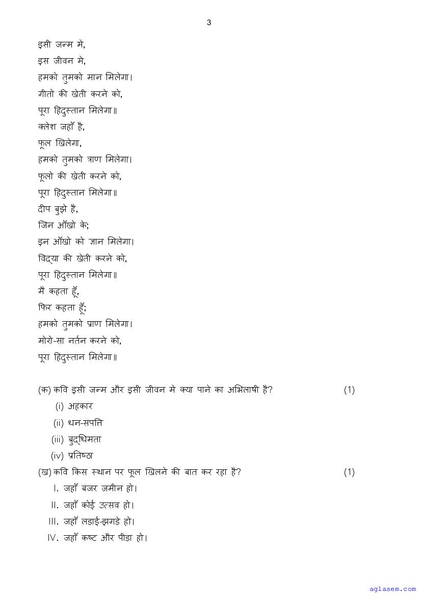 | AglaSem Paper | Class 10 Sample Paper of Hindi |