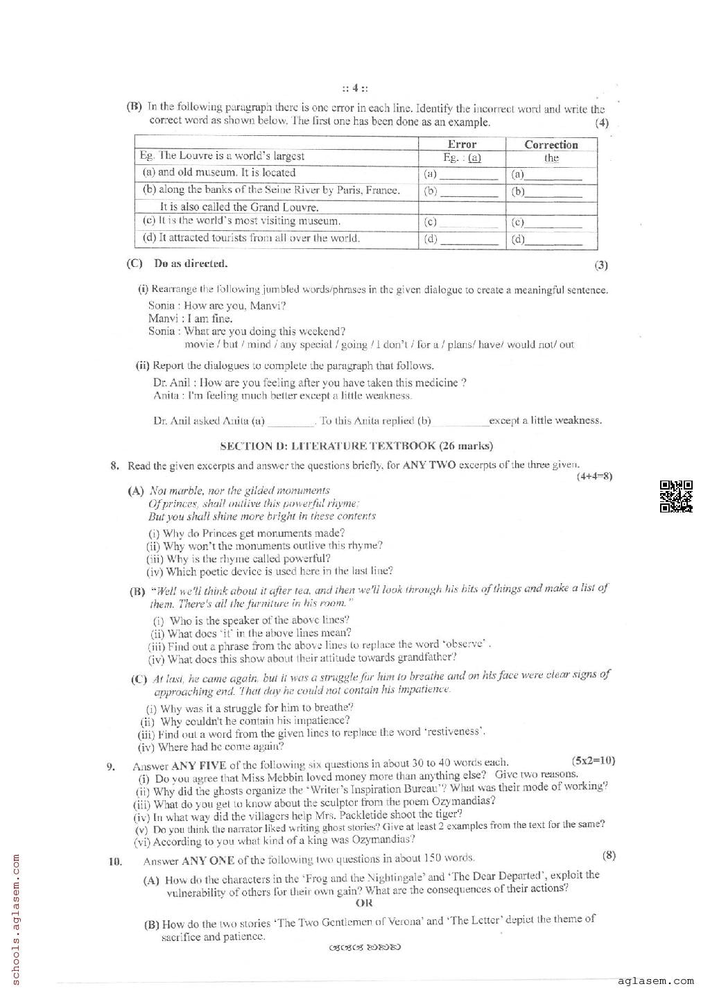 You can easily download the Class 10 English Communicative Mid Term Question Paper PDF from aglasem. The paper is prepared based on the latest syllabus and gives a clear idea of the type of questions asked in the exam. The mid term exam question paper for 10th std for English Communicative subject is as follows.