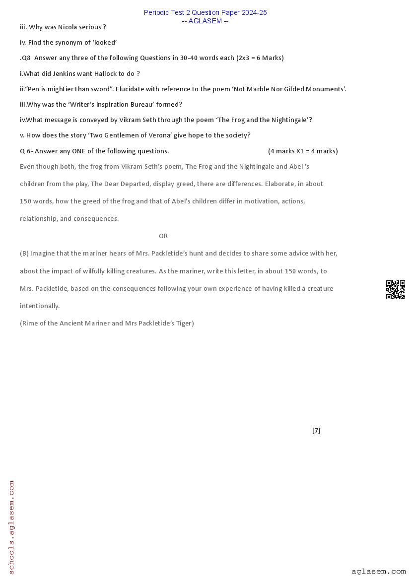 The complete pdf for Periodic Test I Question Paper for English is as follows.