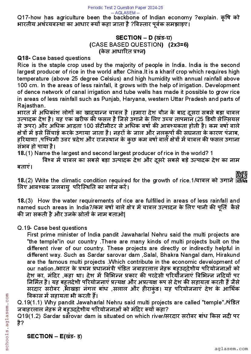 Class 10 PT 2 Question Paper Social Science 2024-25