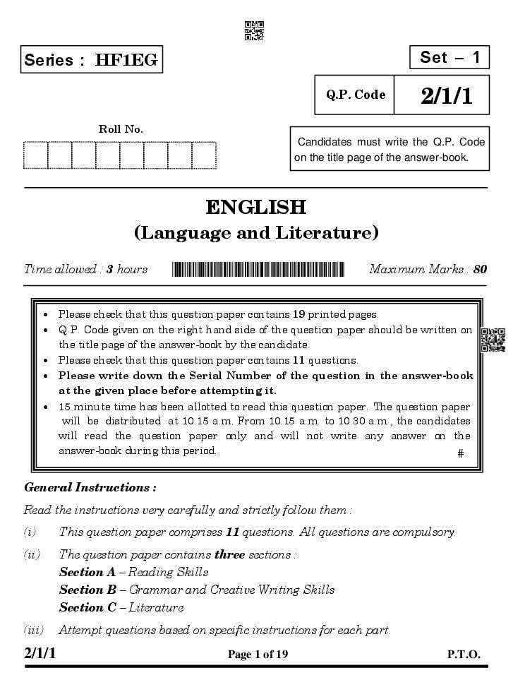 Class 10 English Question Paper 2023 – Click Here to Download Annual Exam Question Paper PDF