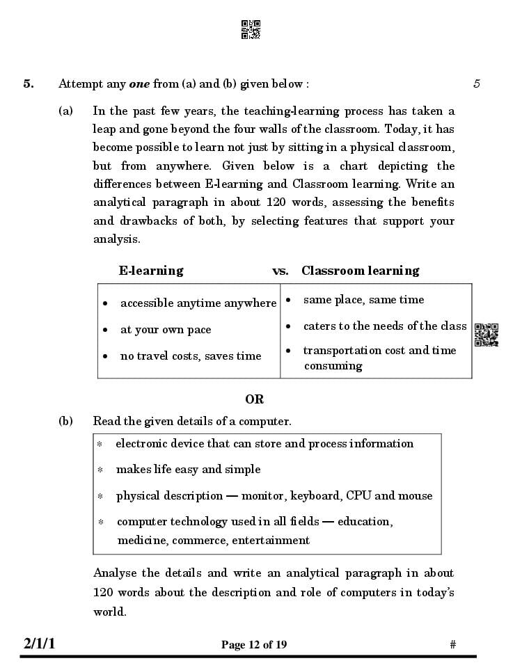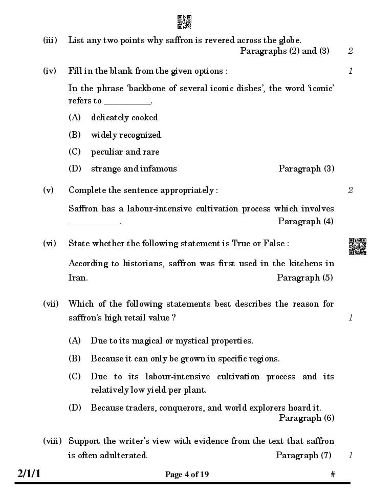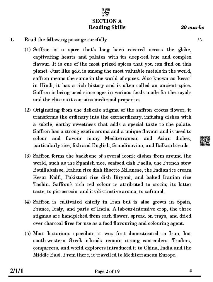 The question paper 2025, 2024, 2023 for class 10 (or 10th std) for English subject is as follows.