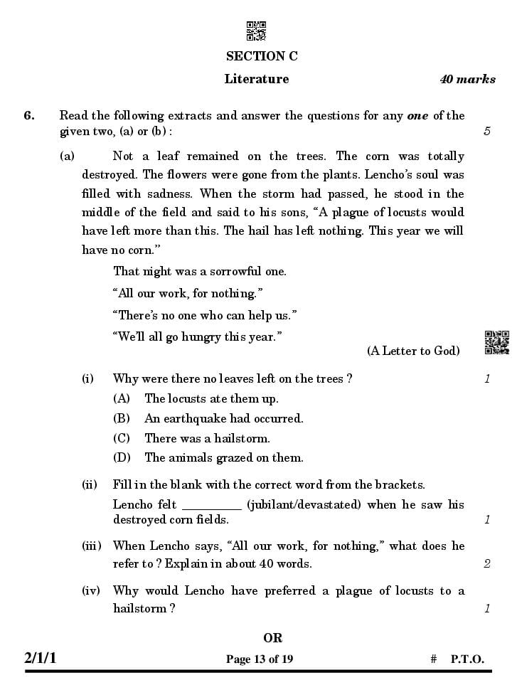 We have provided you the direct link to download English question paper above. However if you want to read the 10th English Annual Exam exam question paper here itself, that is also possible. The complete paper is as follows.