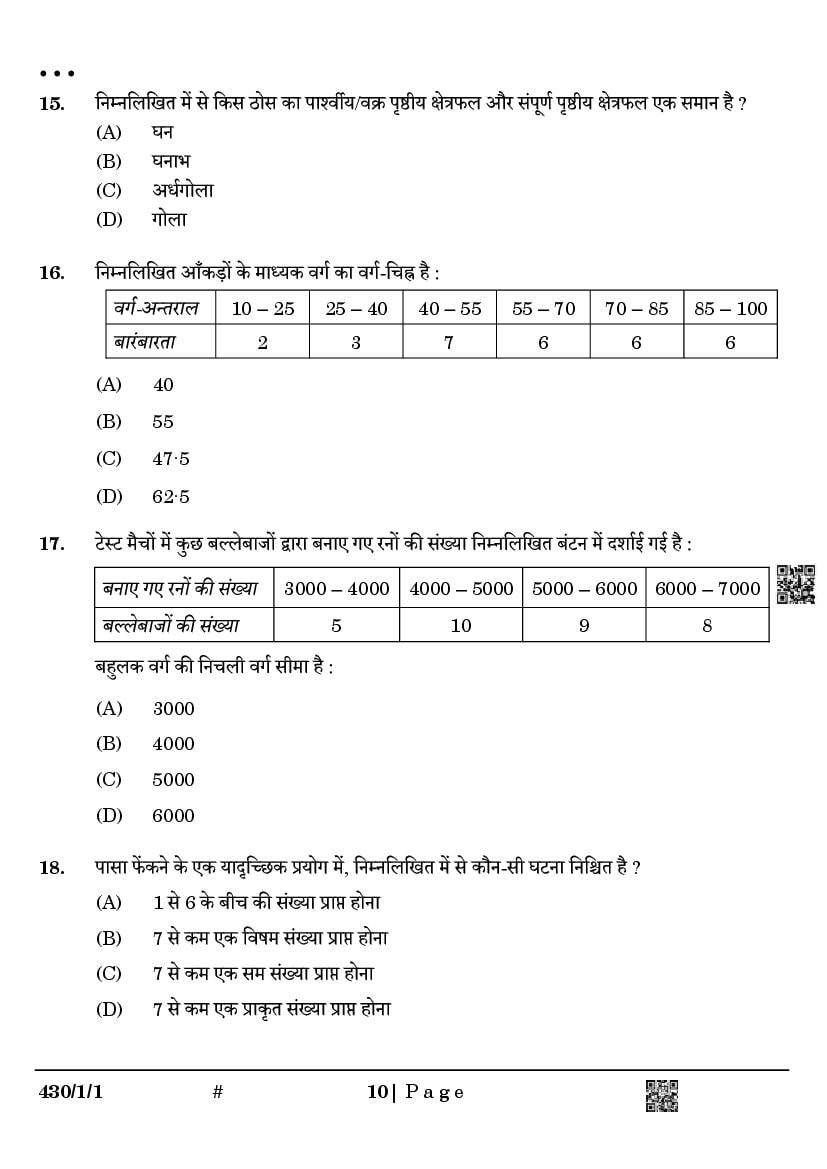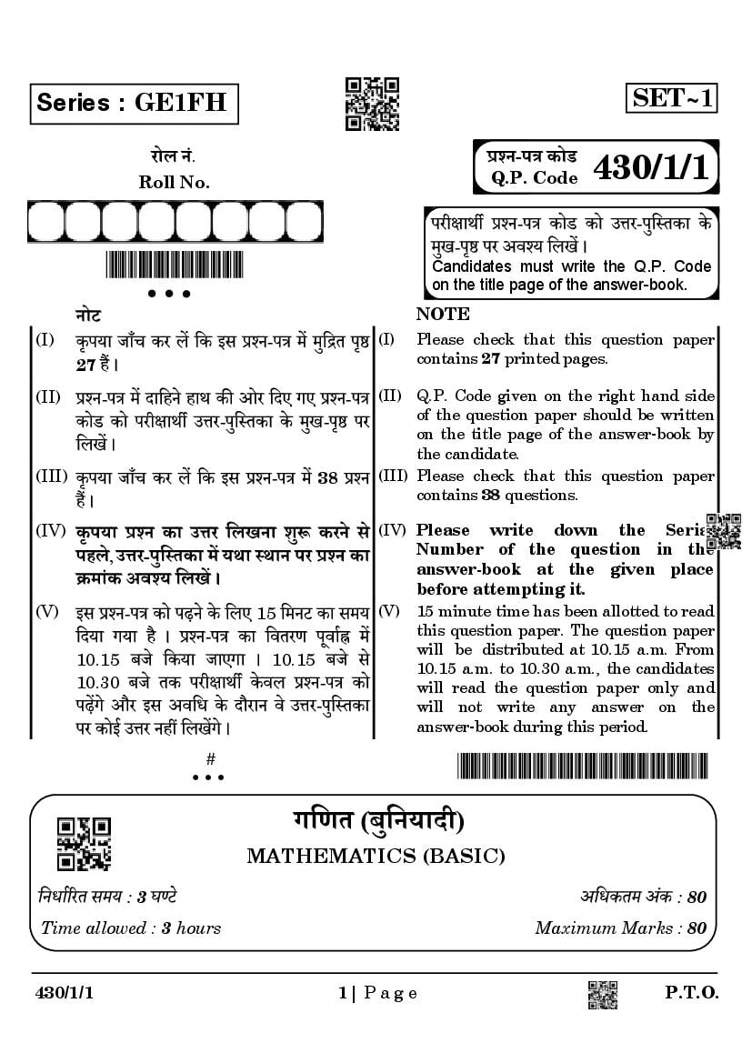 The question paper 2025, 2024, 2023 for class 10 (or 10th std) for Maths Basic subject is as follows.