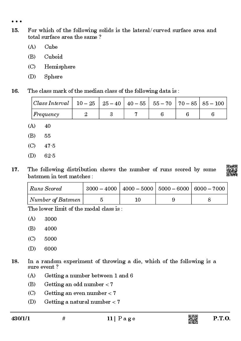 - Question Papers for Class 11