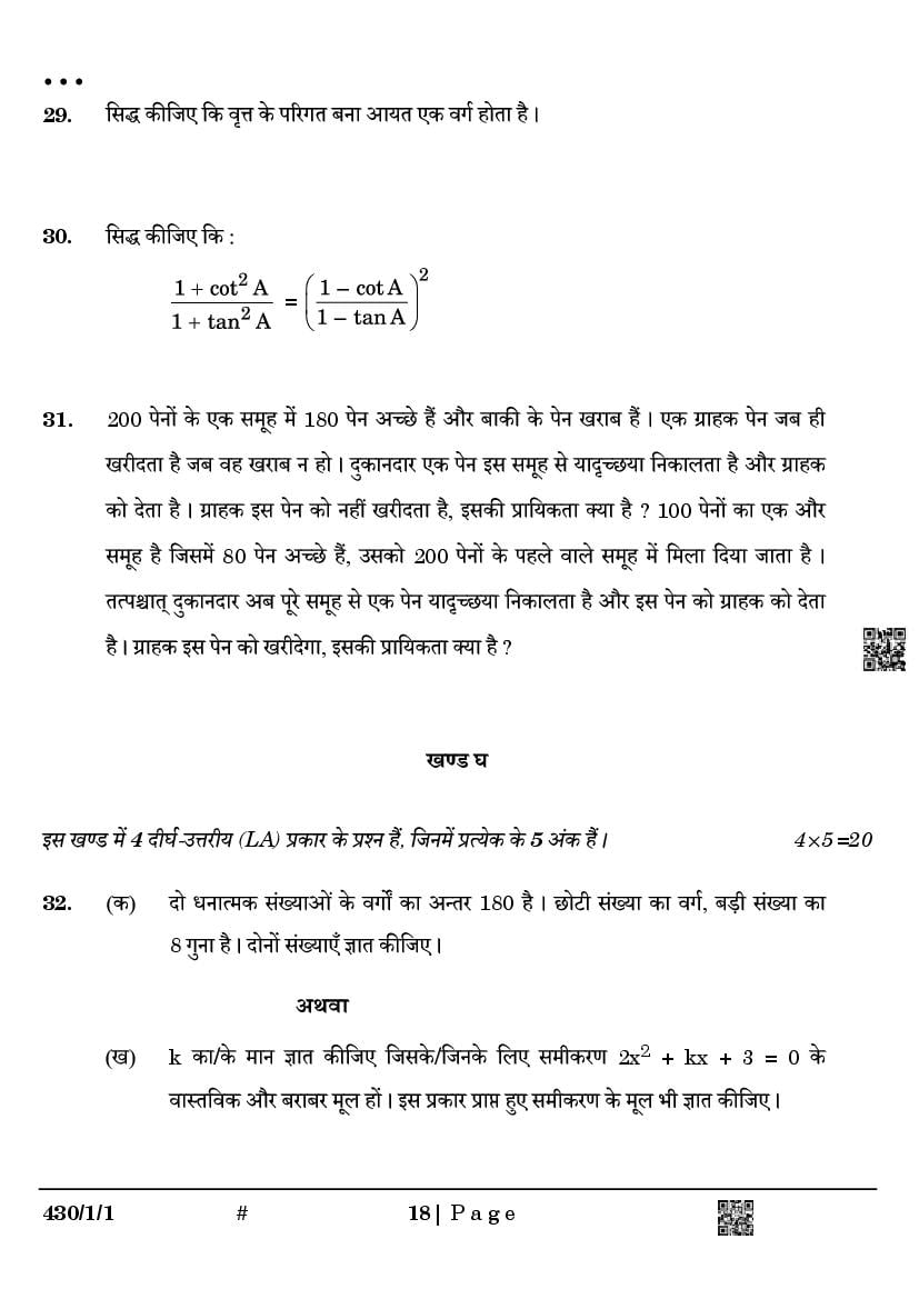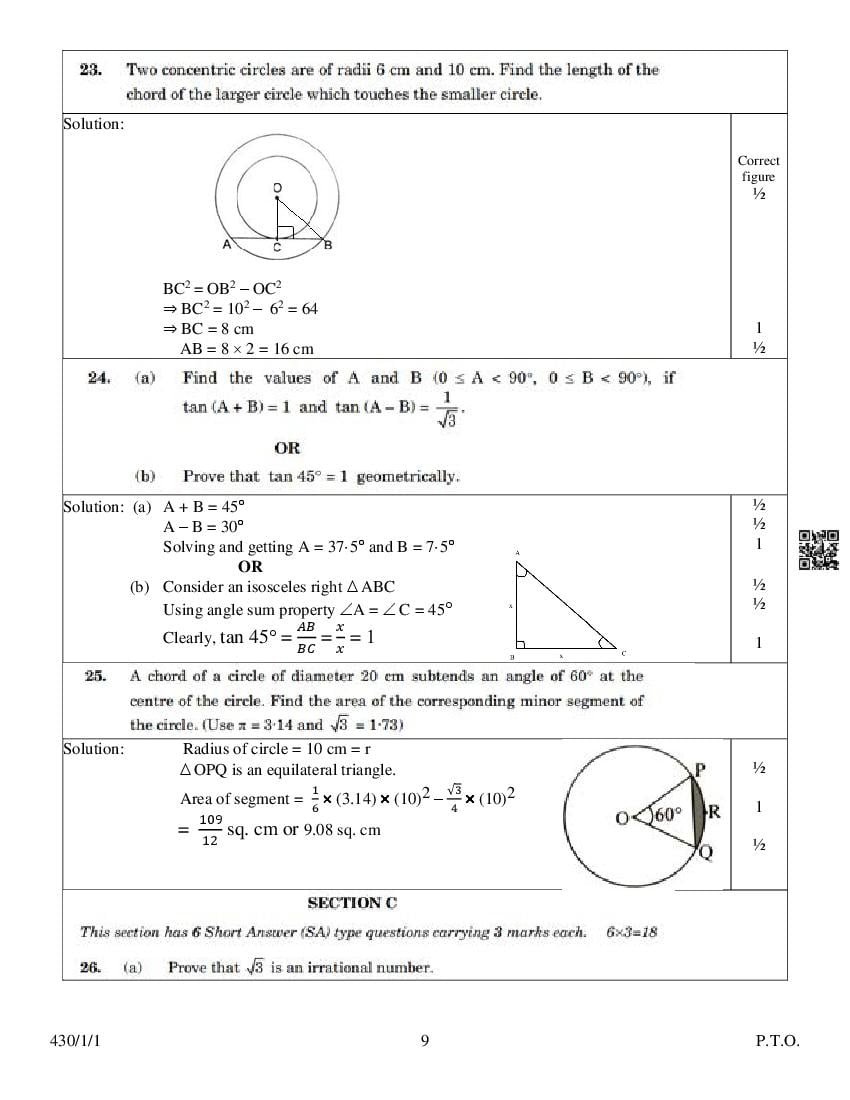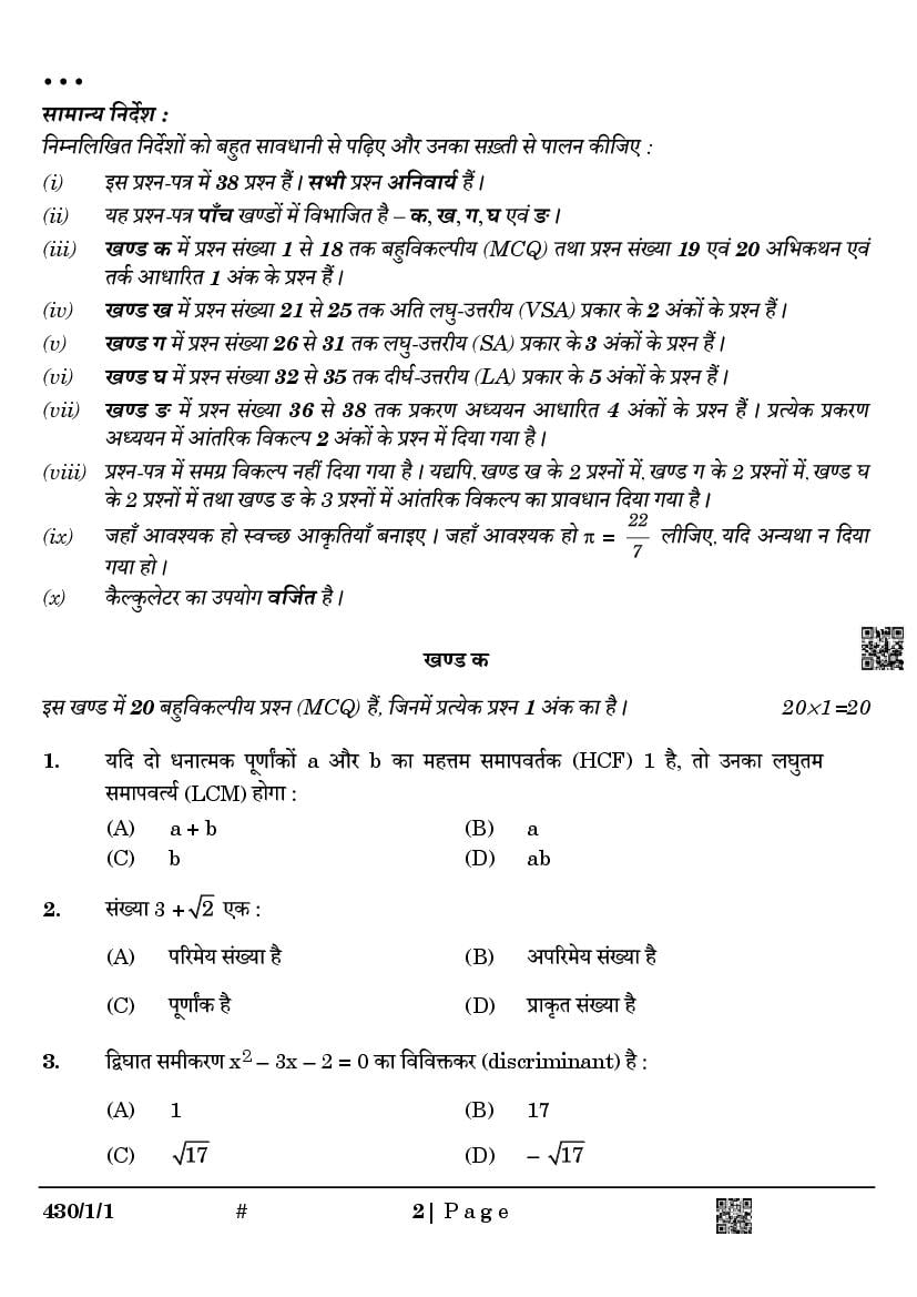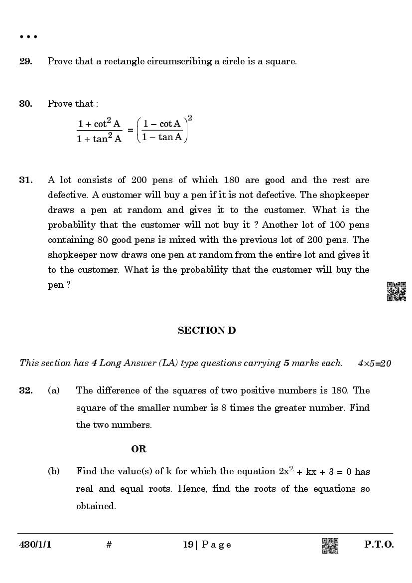 We have provided you the direct link to download Maths Basic question paper above. However if you want to read the 10th Maths Basic Annual Exam exam question paper here itself, that is also possible. The complete paper is as follows.