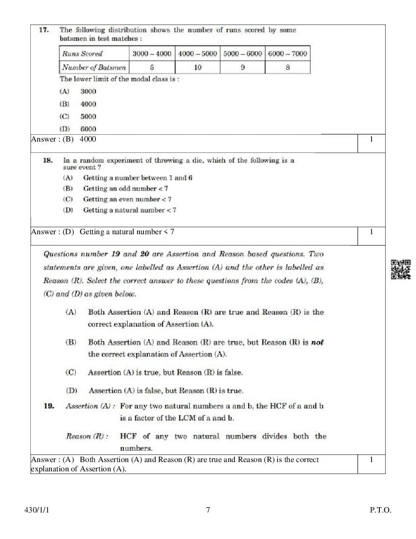 - Question Papers for Class 7