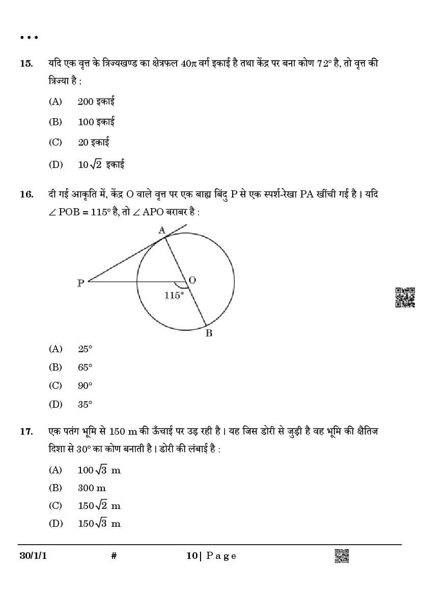 Class 10 Question Paper 2025 Maths Standard View Download
