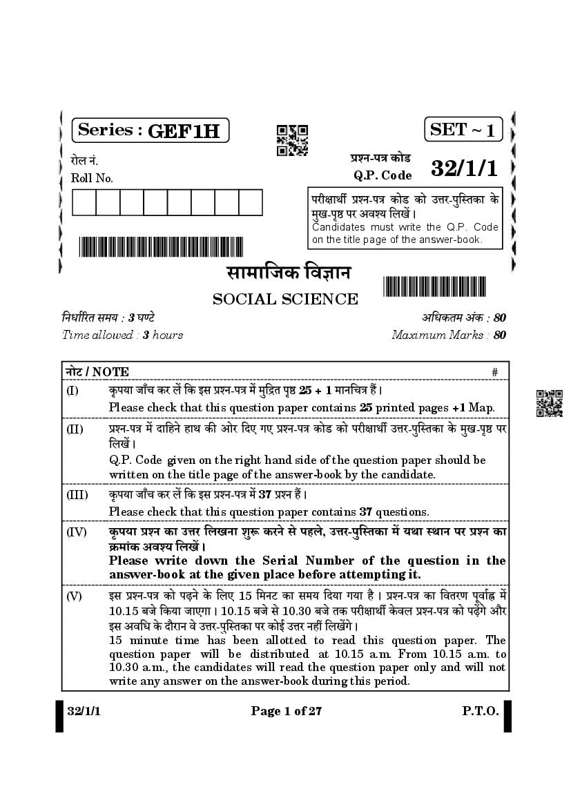 The question paper 2025, 2024, 2023 for class 10 (or 10th std) for Social Science subject is as follows.