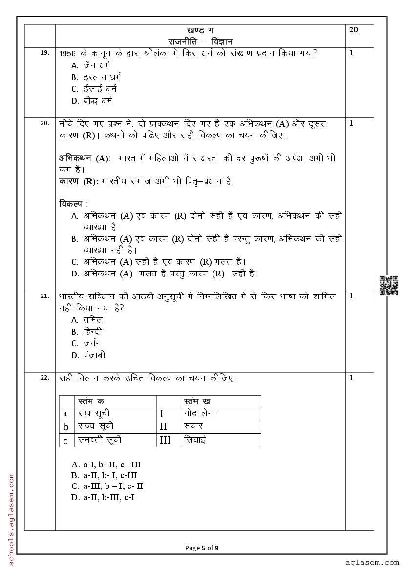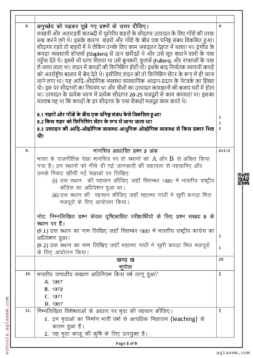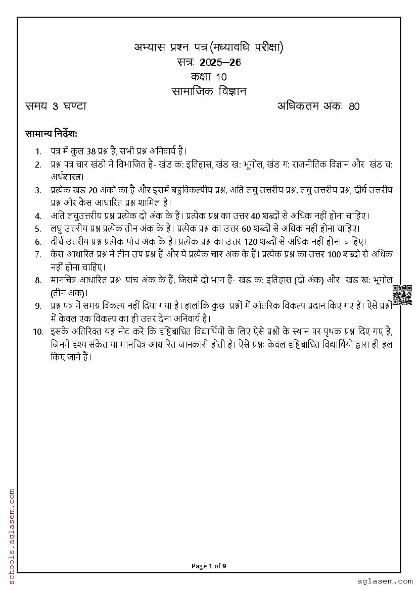 You can view and download Sample Paper for Standard 10 Mid-Term Exam 2025 for Social Science subject from aglasem.
