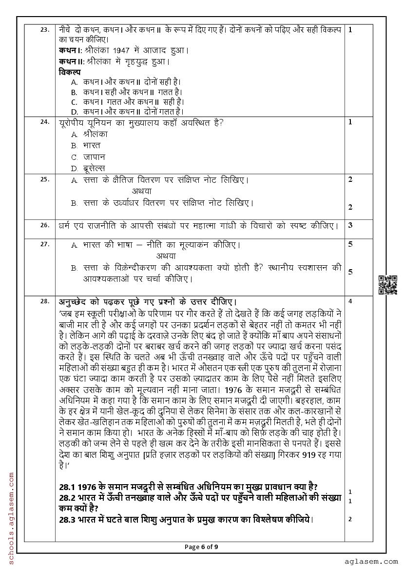 Get the Class 10 Social Science Mid Term Sample Paper 2025 for your school mid term examination. These Class 10 Social Science Mid Term Sample Paper 2025 for are developed by experts based on NCERT syllabus. You can now download the Class 10 Social Science Mid Term Model Question Paper PDF here at aglasem. This class 10 mid term sample paper for Social Science contains specimen questions from the latest class 10 Social Science syllabus and gives you a good idea of what to expect in Social Science paper in periodic tests, unit tests or term 1 examination. Therefore, by solving the Social Science sample paper, you can aim for better marks in class 10 periodic test.