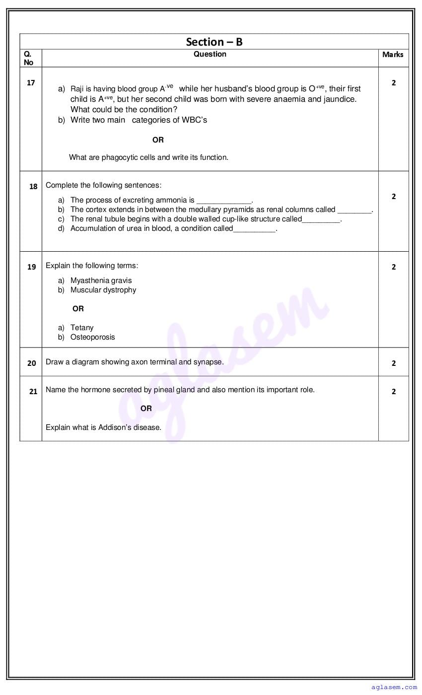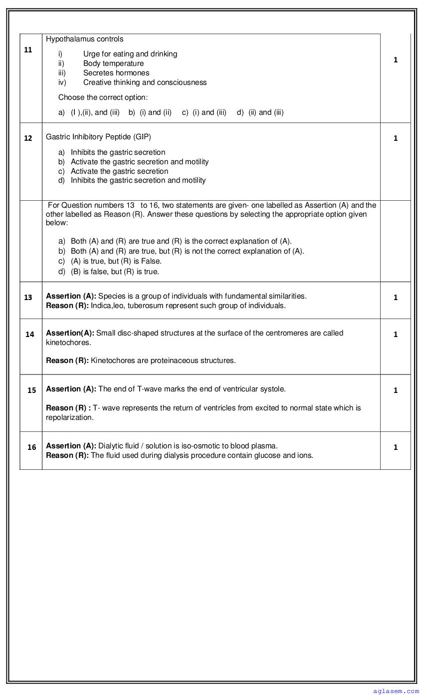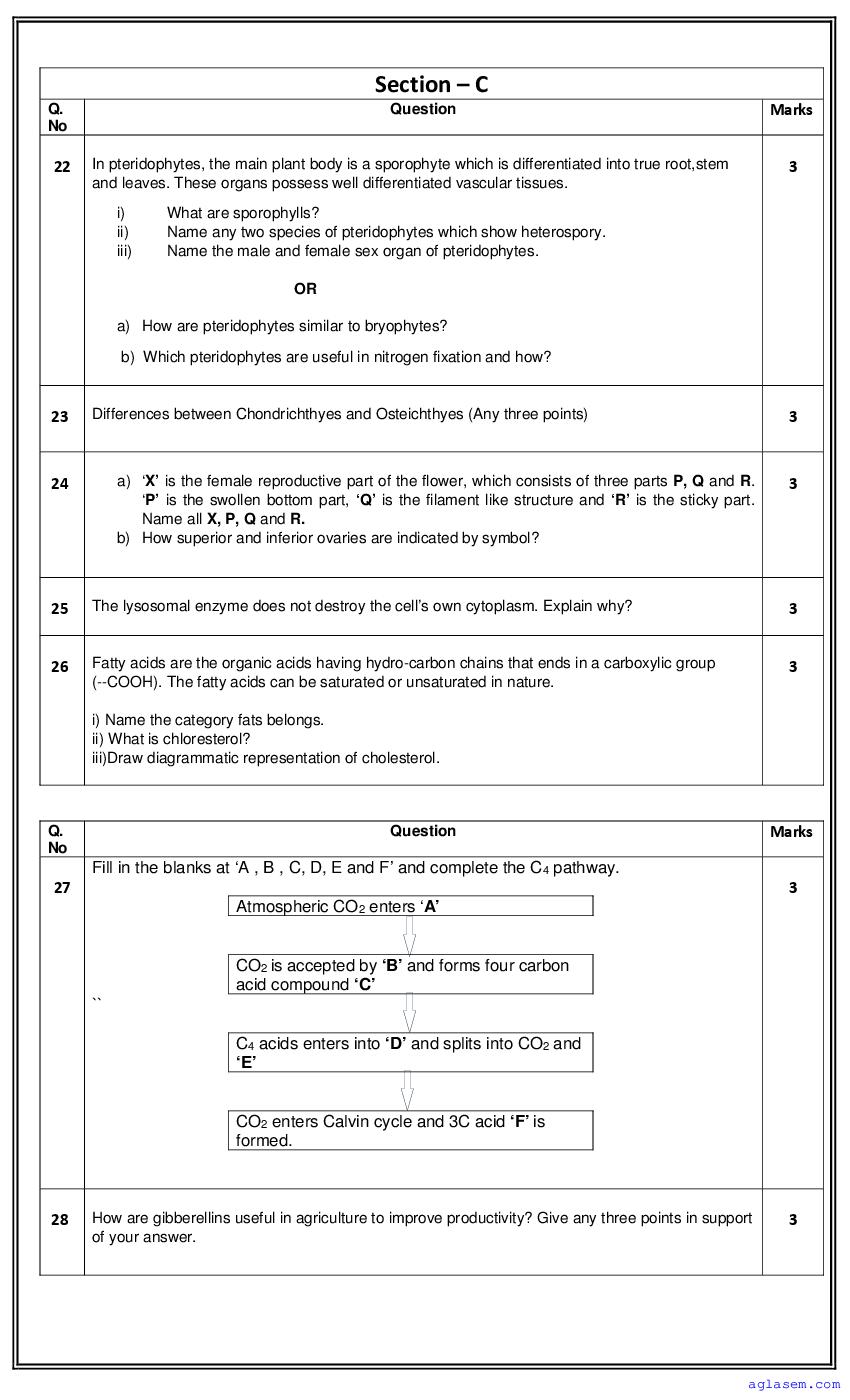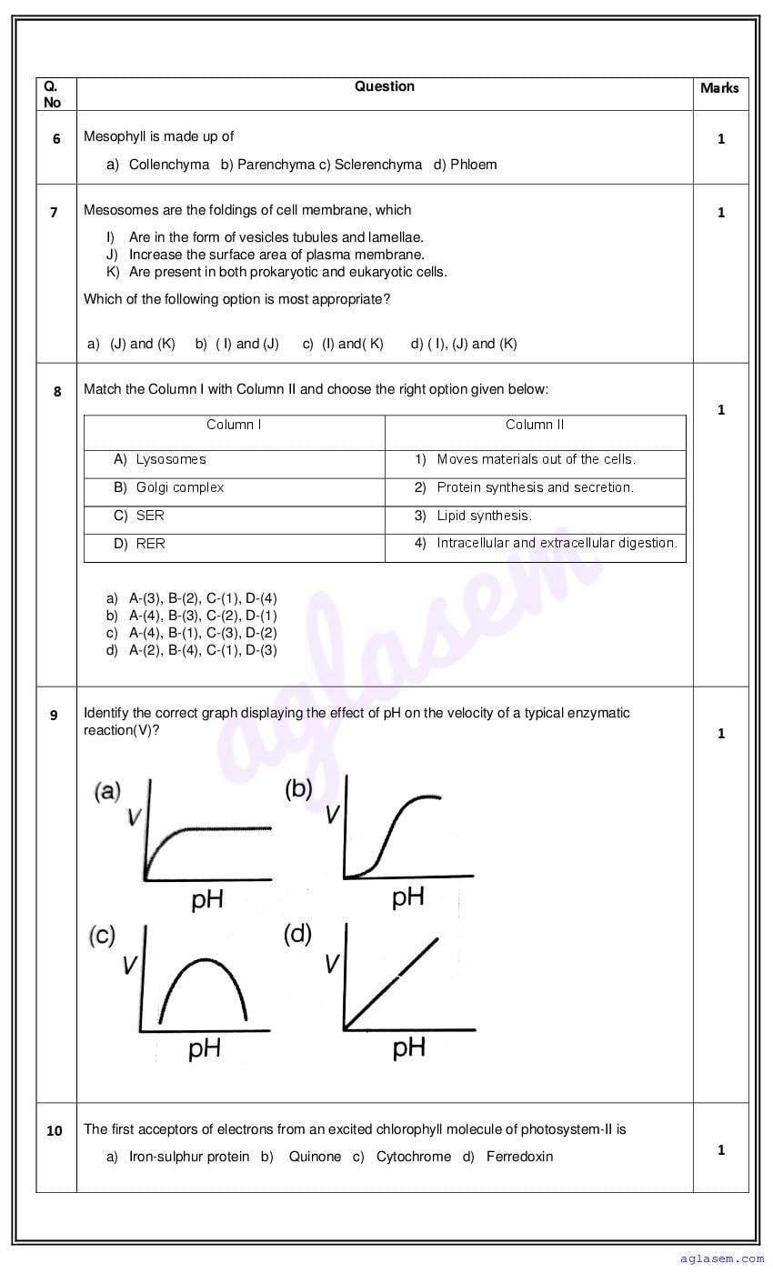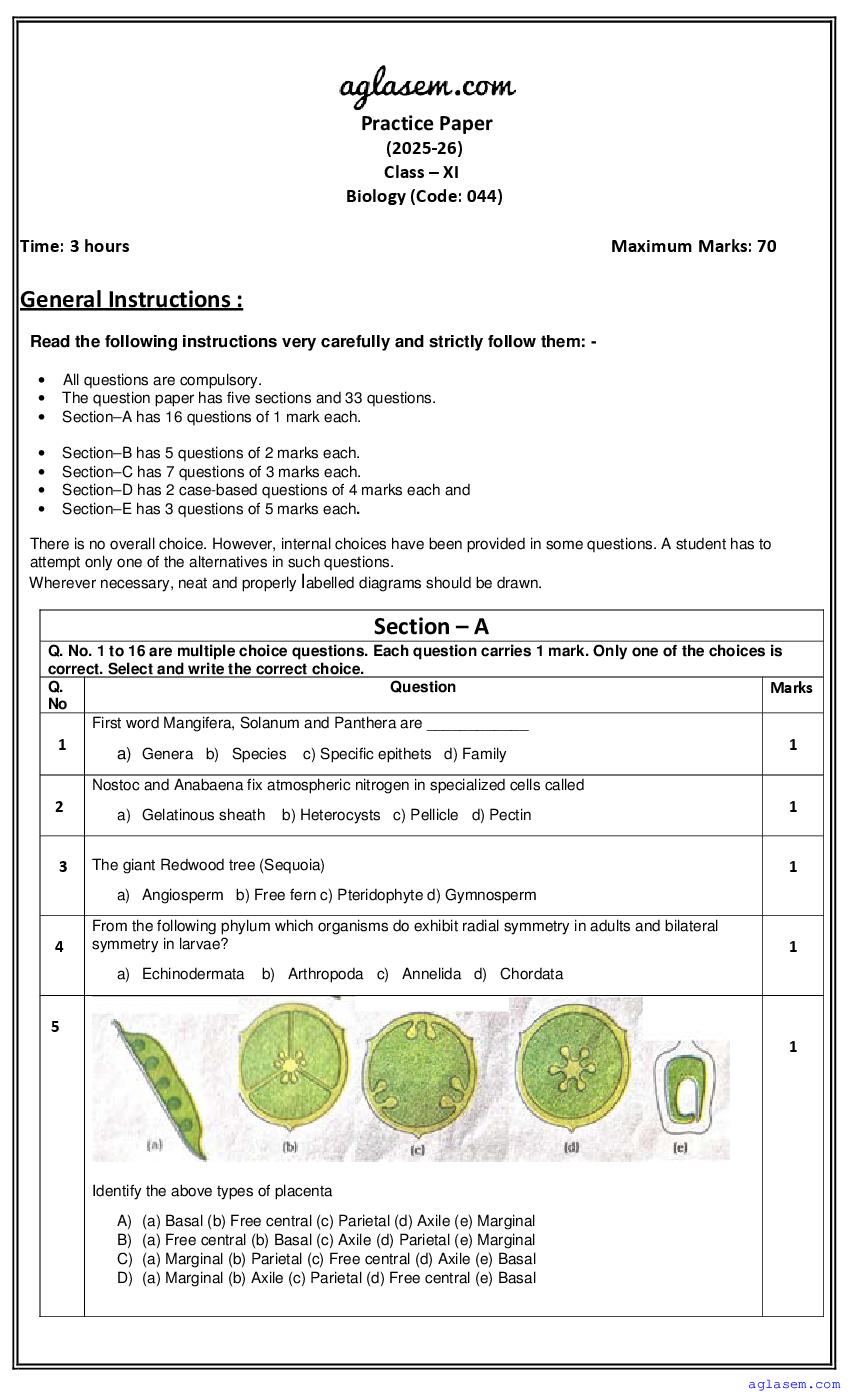 | AglaSem Paper | Class 11 Sample Paper of Biology |
