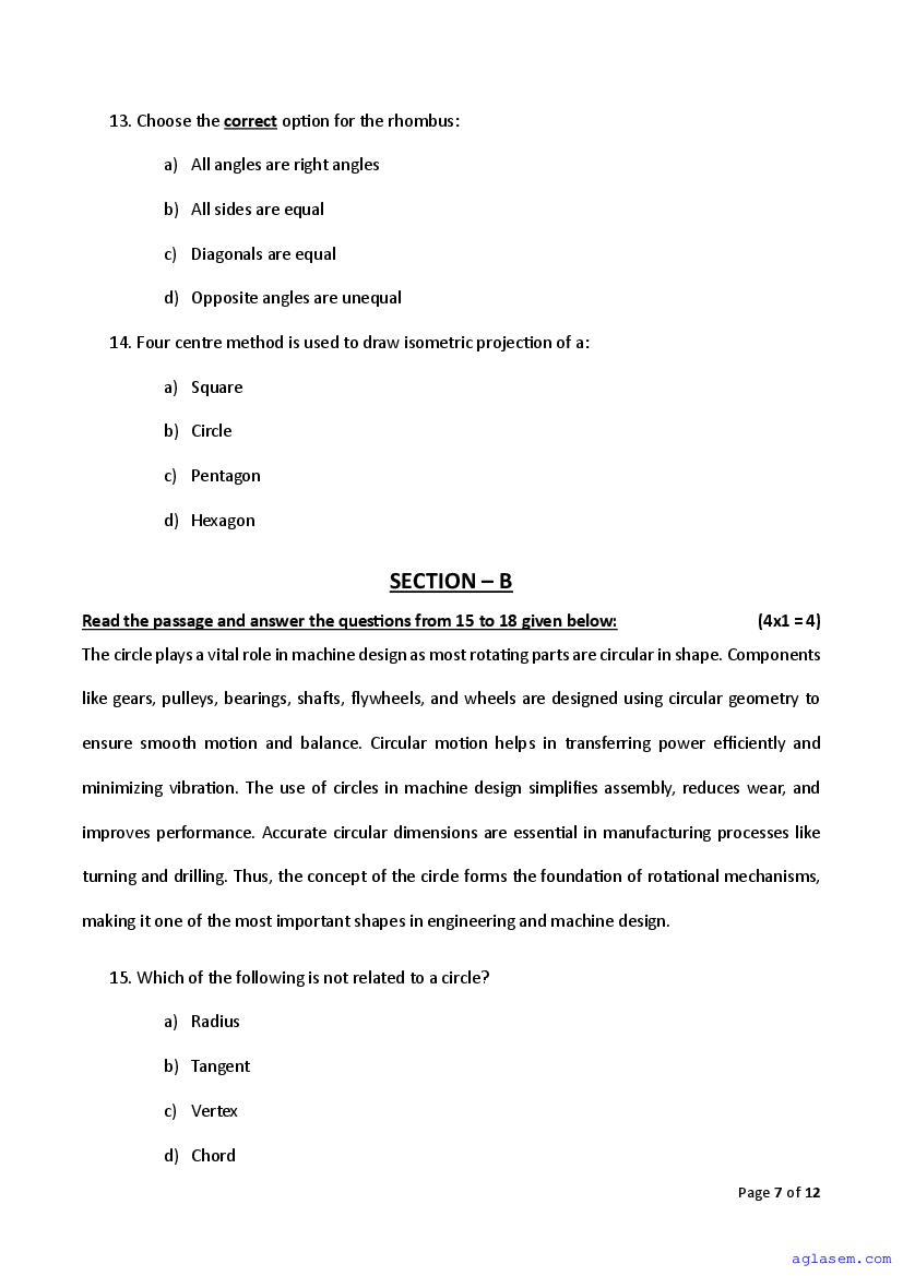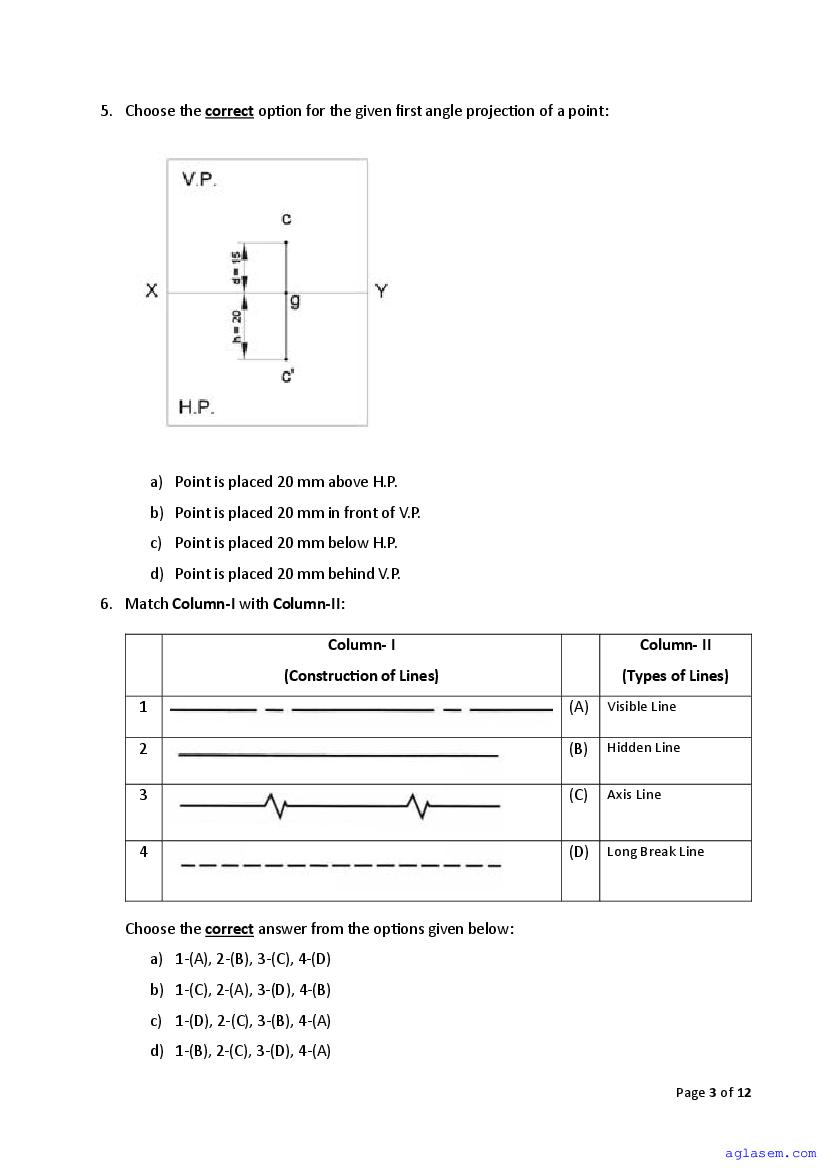| AglaSem Paper | Class 11 Sample Paper of Engineering Graphics |