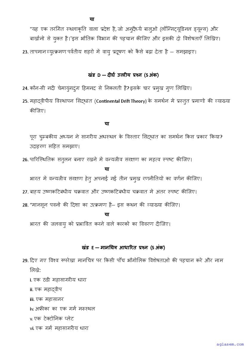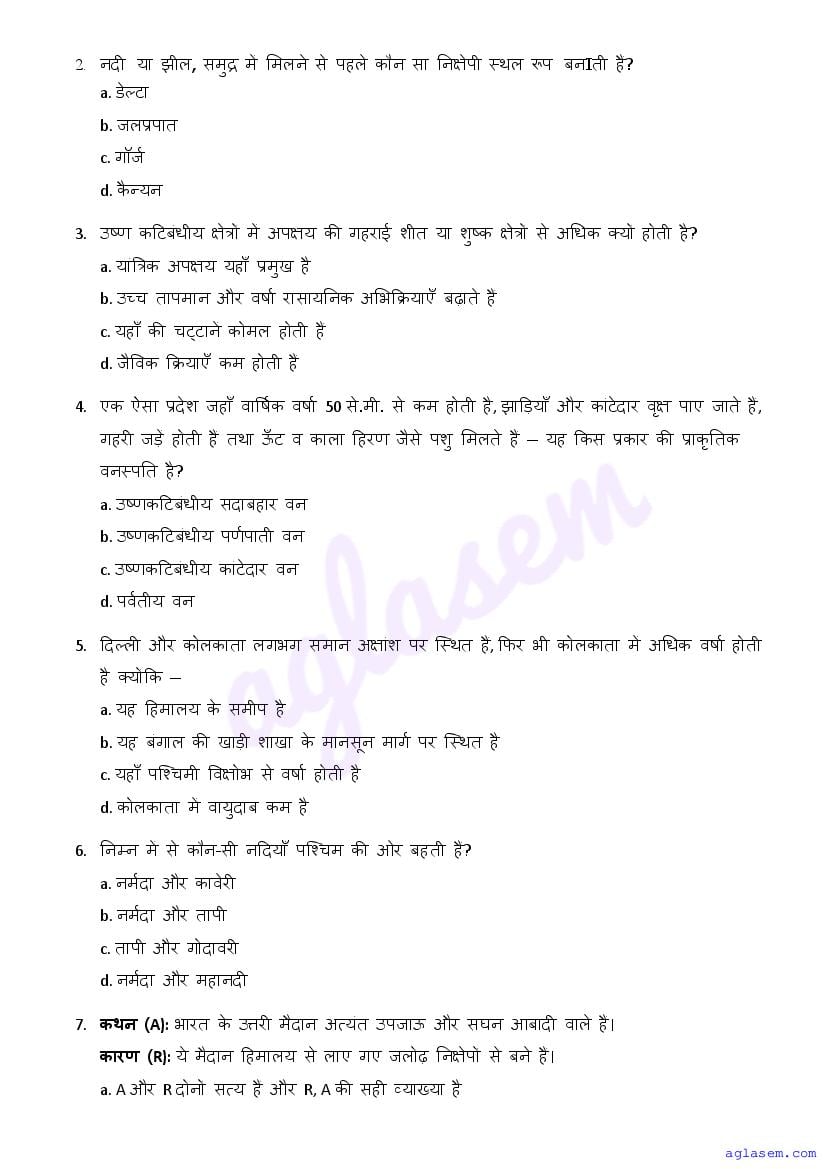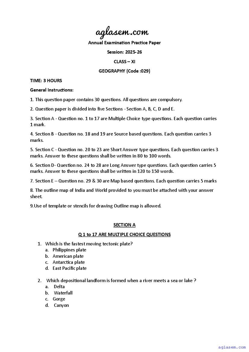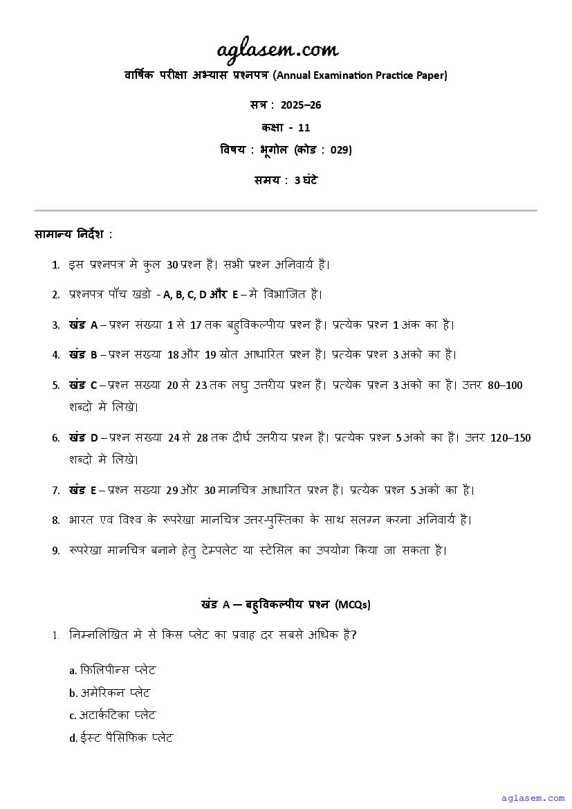 | AglaSem Paper | Class 11 Sample Paper of Geography |
