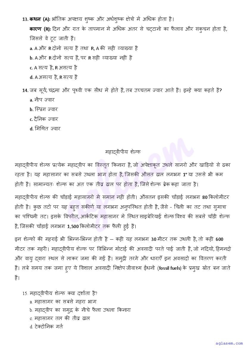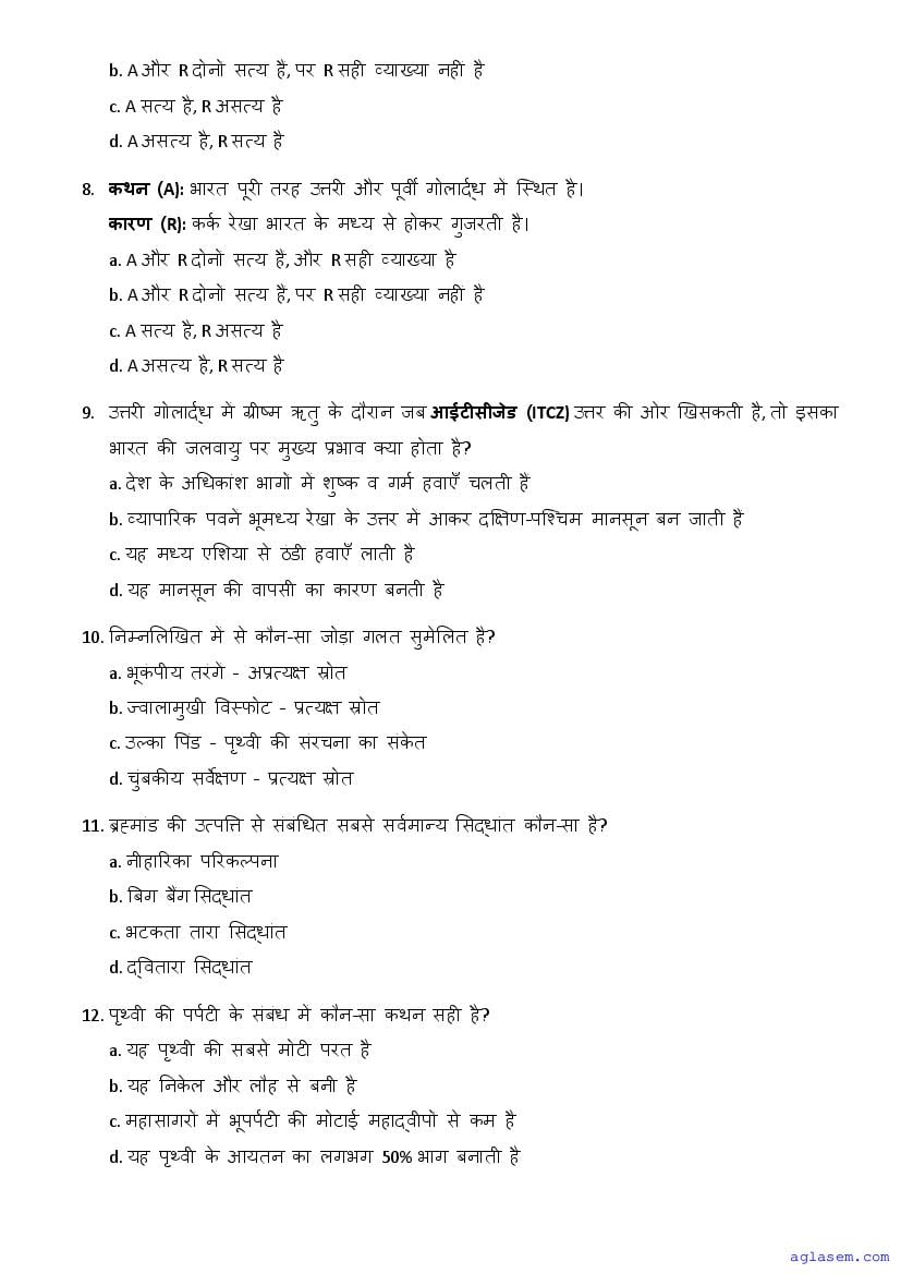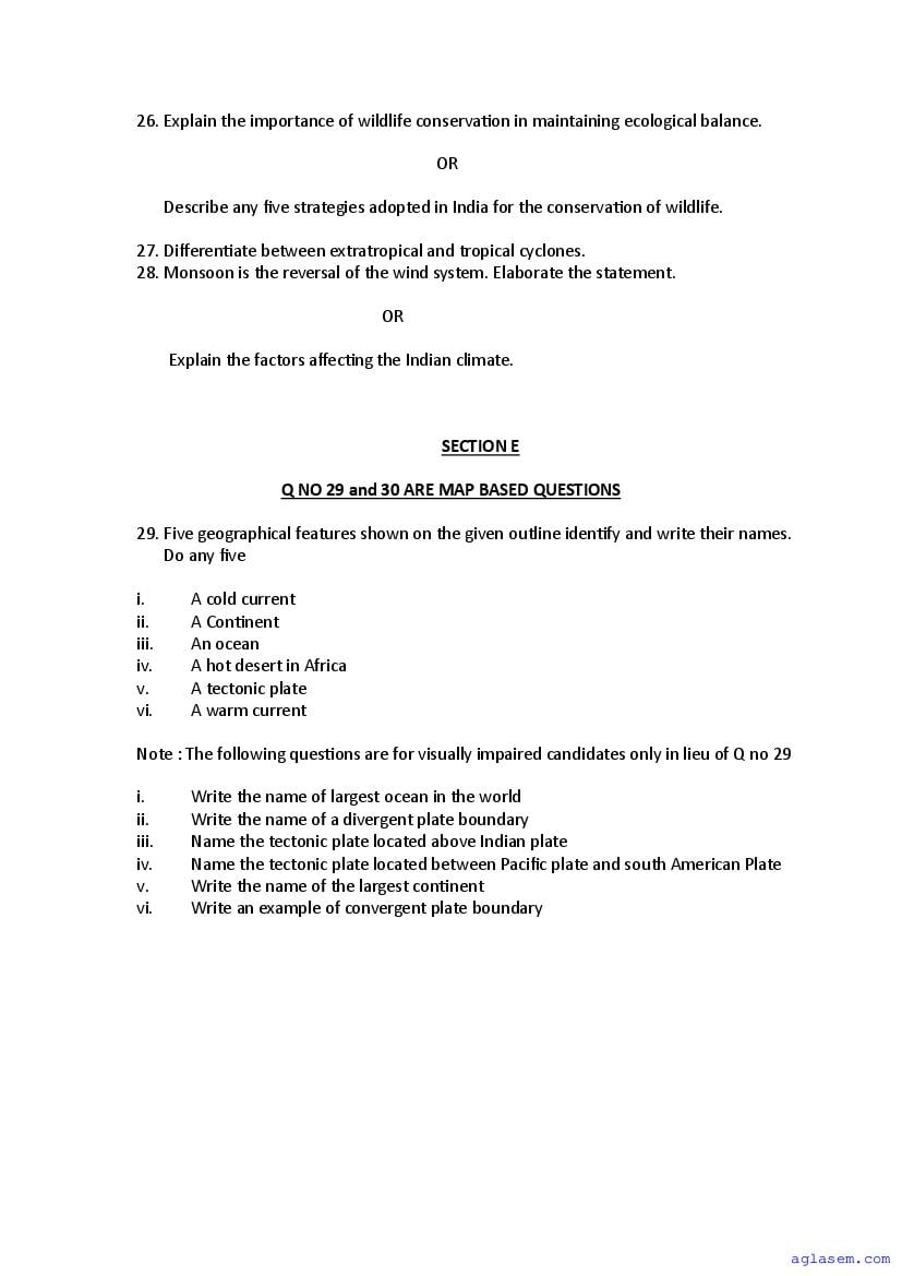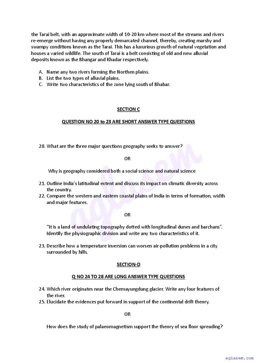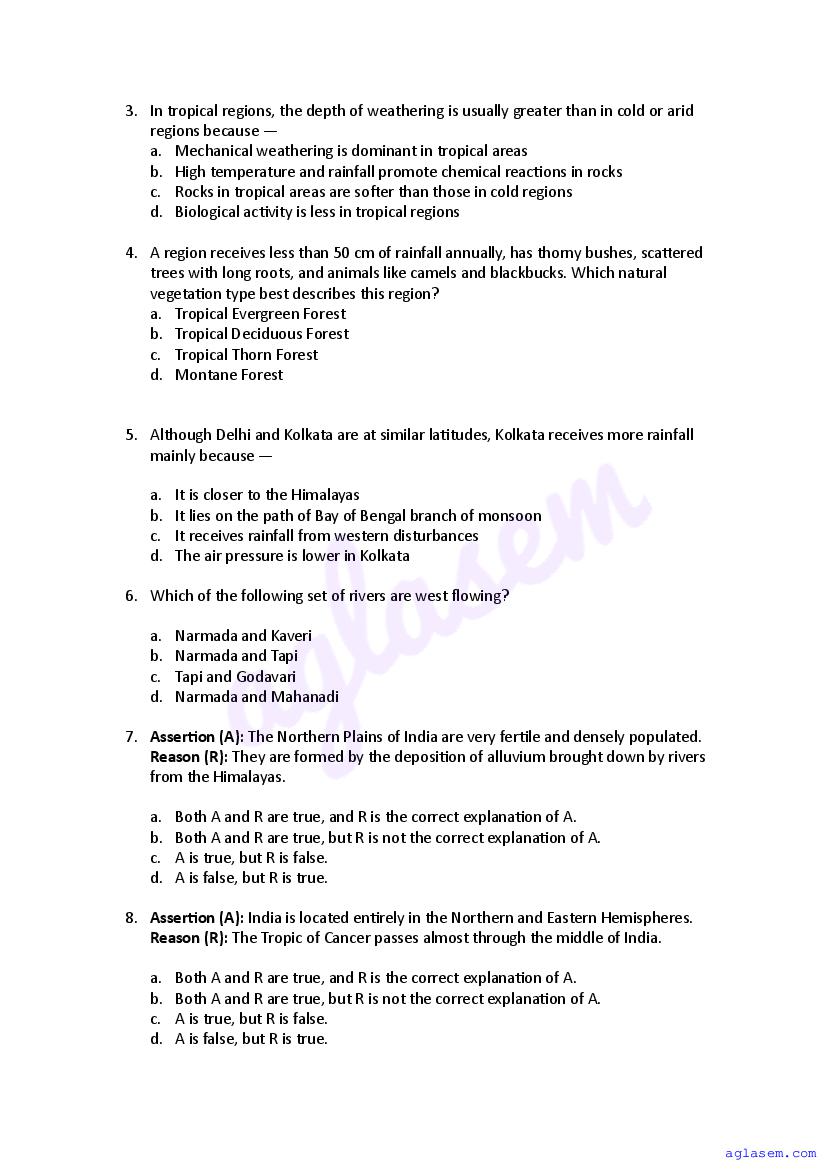 | AglaSem Paper | Class 11 Sample Paper of Geography |