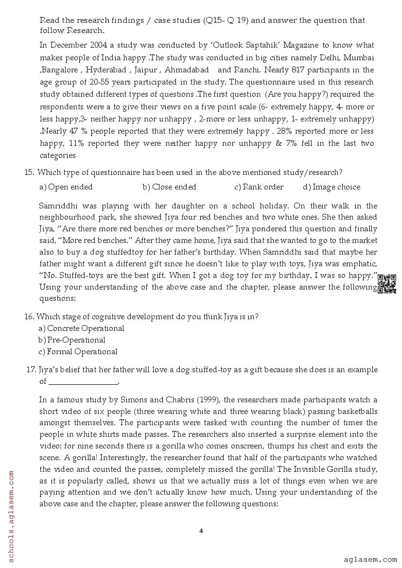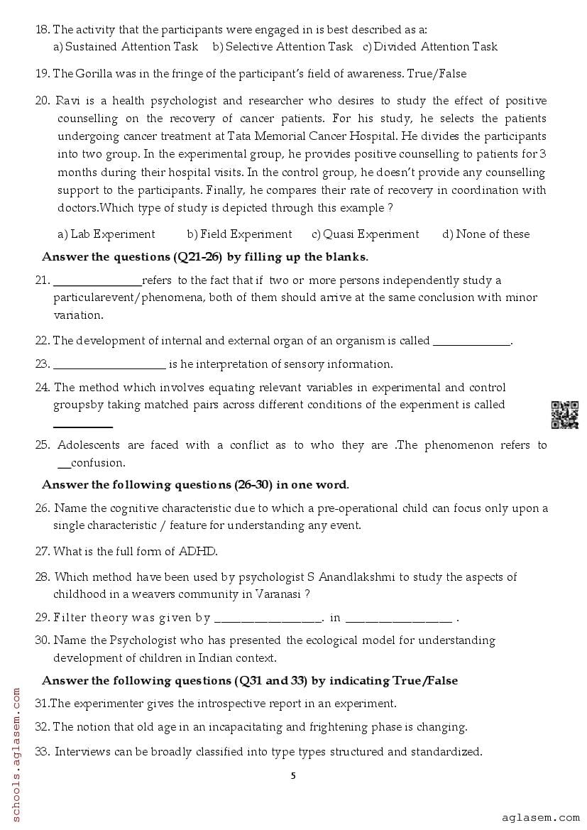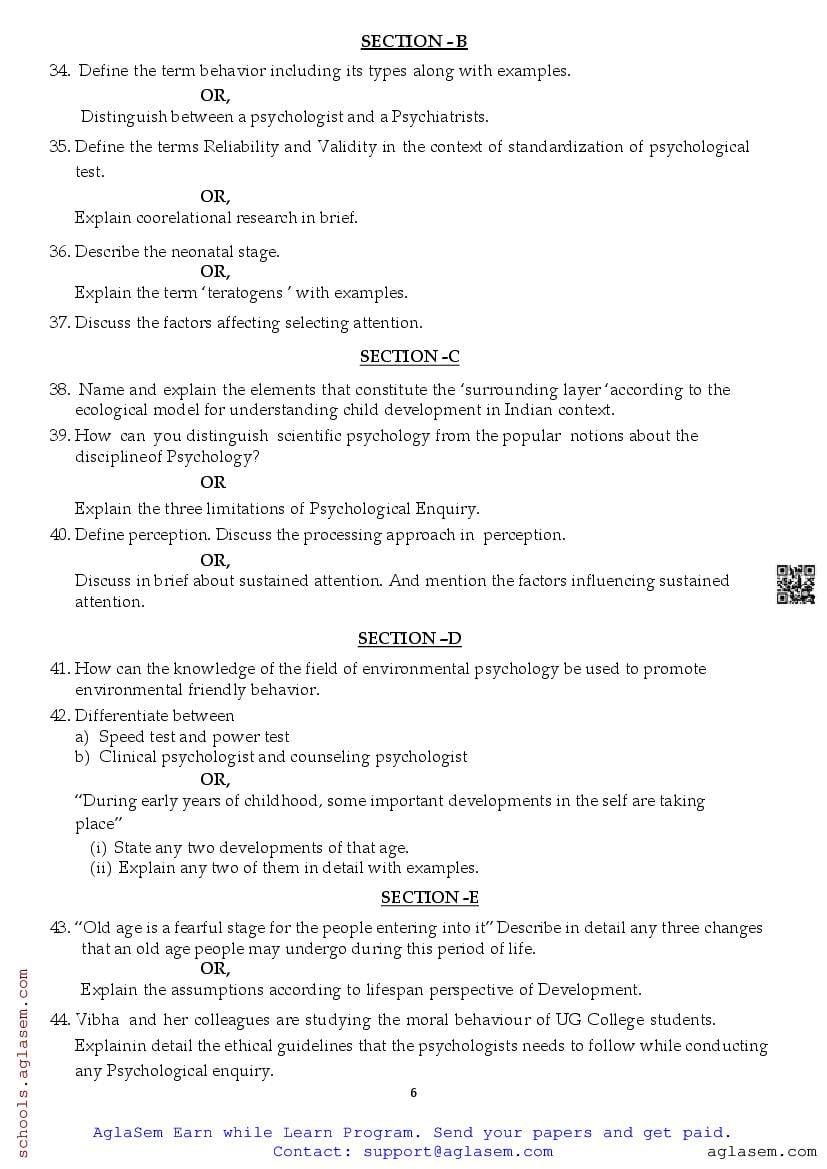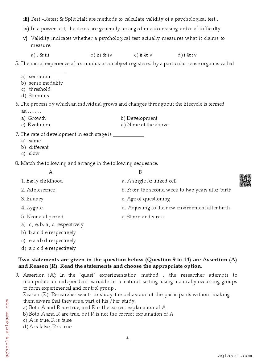We have provided you the direct link to download Psychology question paper above. However if you want to read the 11th Psychology half yearly exam question paper here itself, that is also possible. The complete paper is as follows.