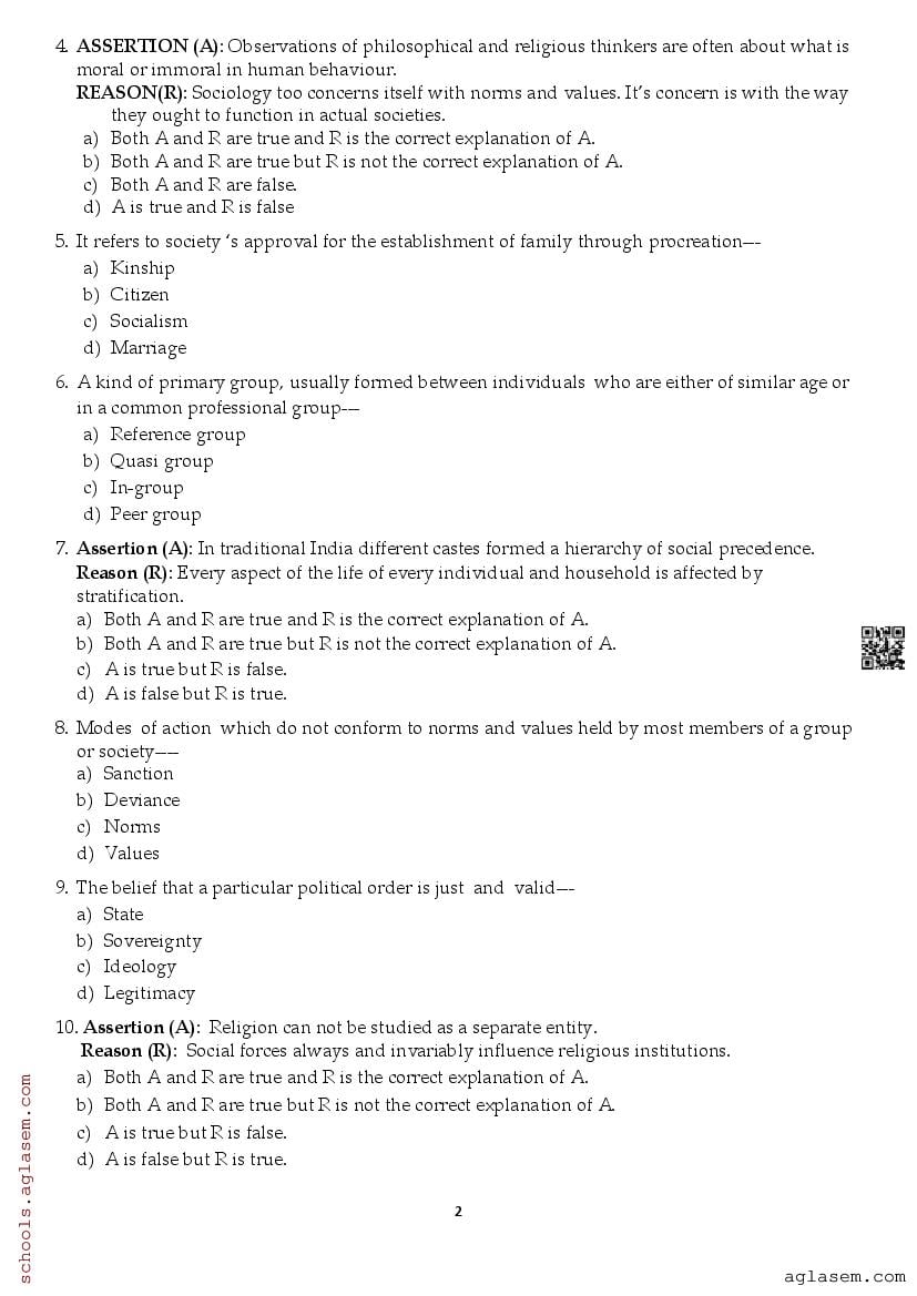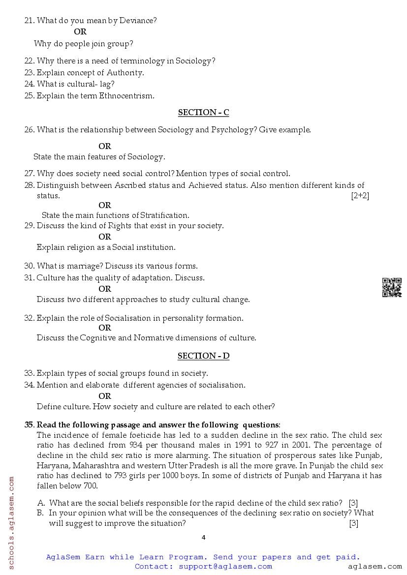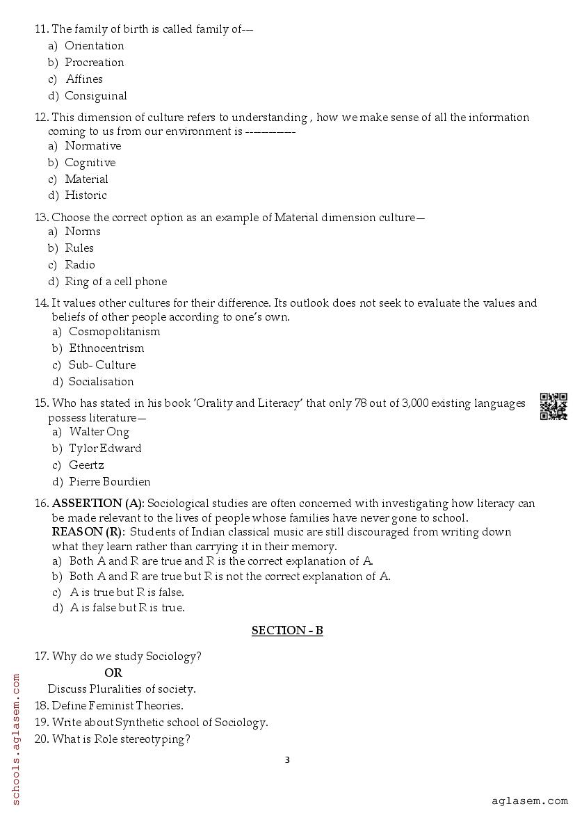 Class 11 Sociology Half Yearly Question Paper 2025 contain questions asked in Sociology exam in 11th standard half-yearly assessment tests. Now at aglasem.com, you can readily download 11th Half Yearly Sociology Question Paper PDF. As class 11 half yearly question paper of Sociology is an important study material for terminal examinations. Therefore if you are a student of std 11th, and your tests are coming up, then you should download Sociology half yearly question paper and solve it to improve your preparation.