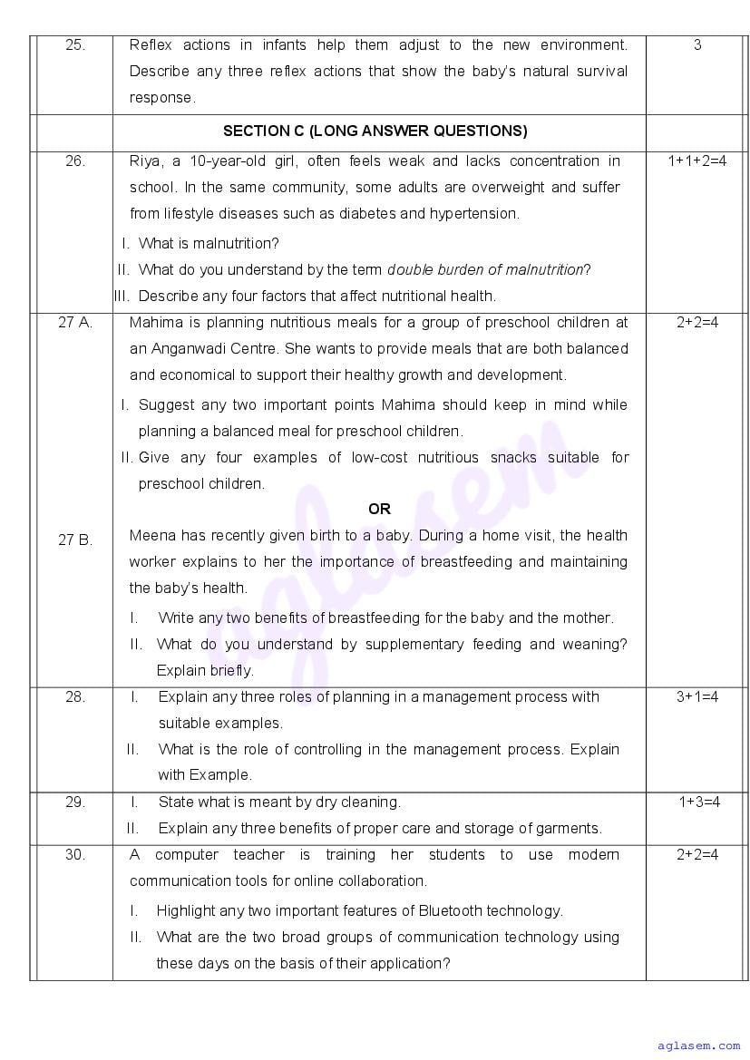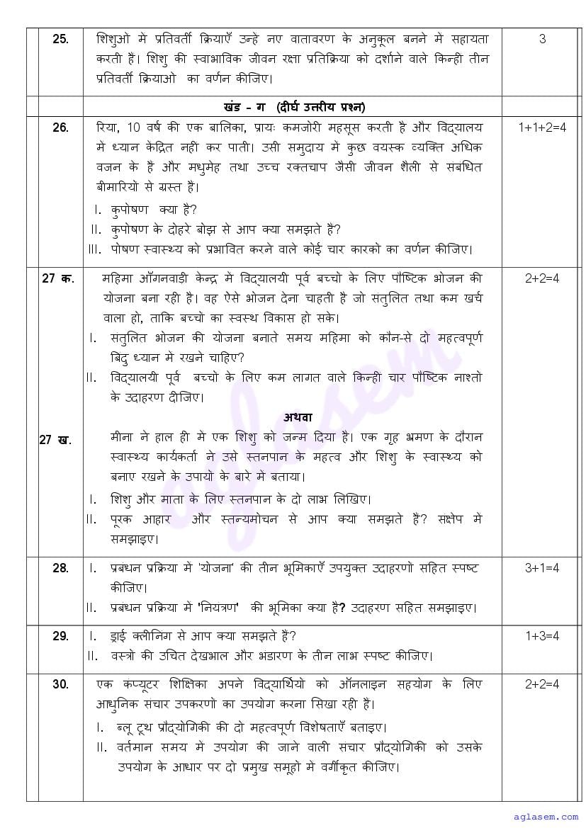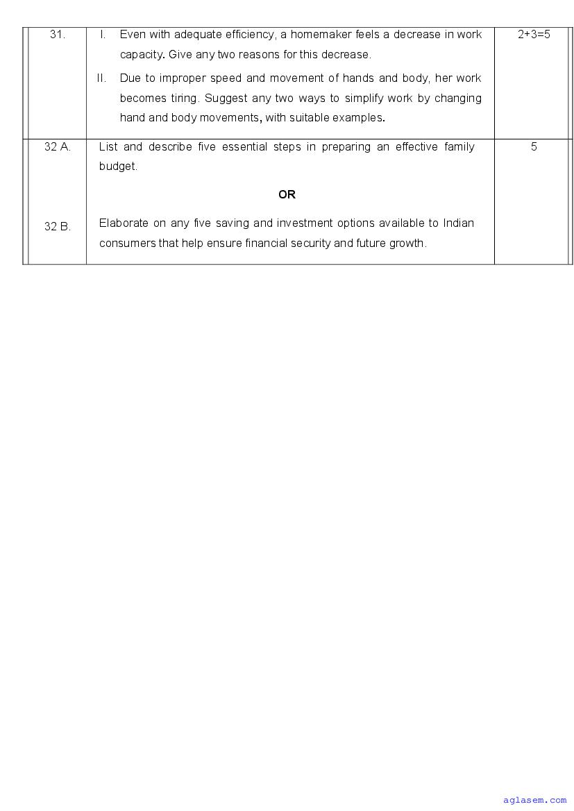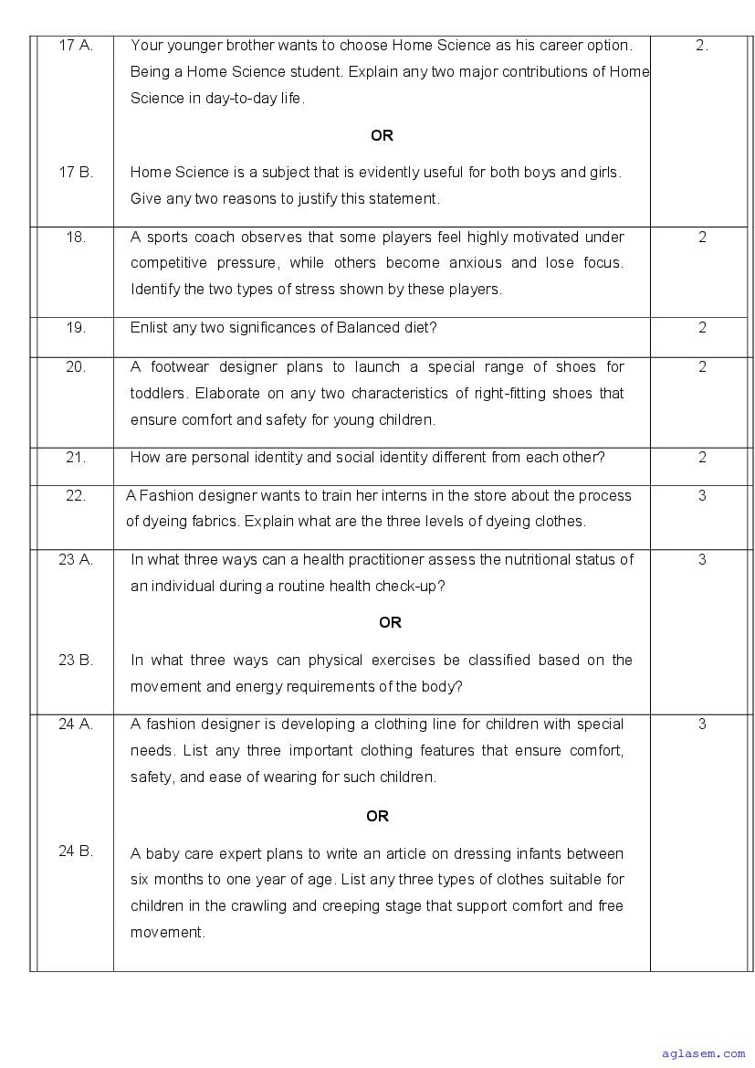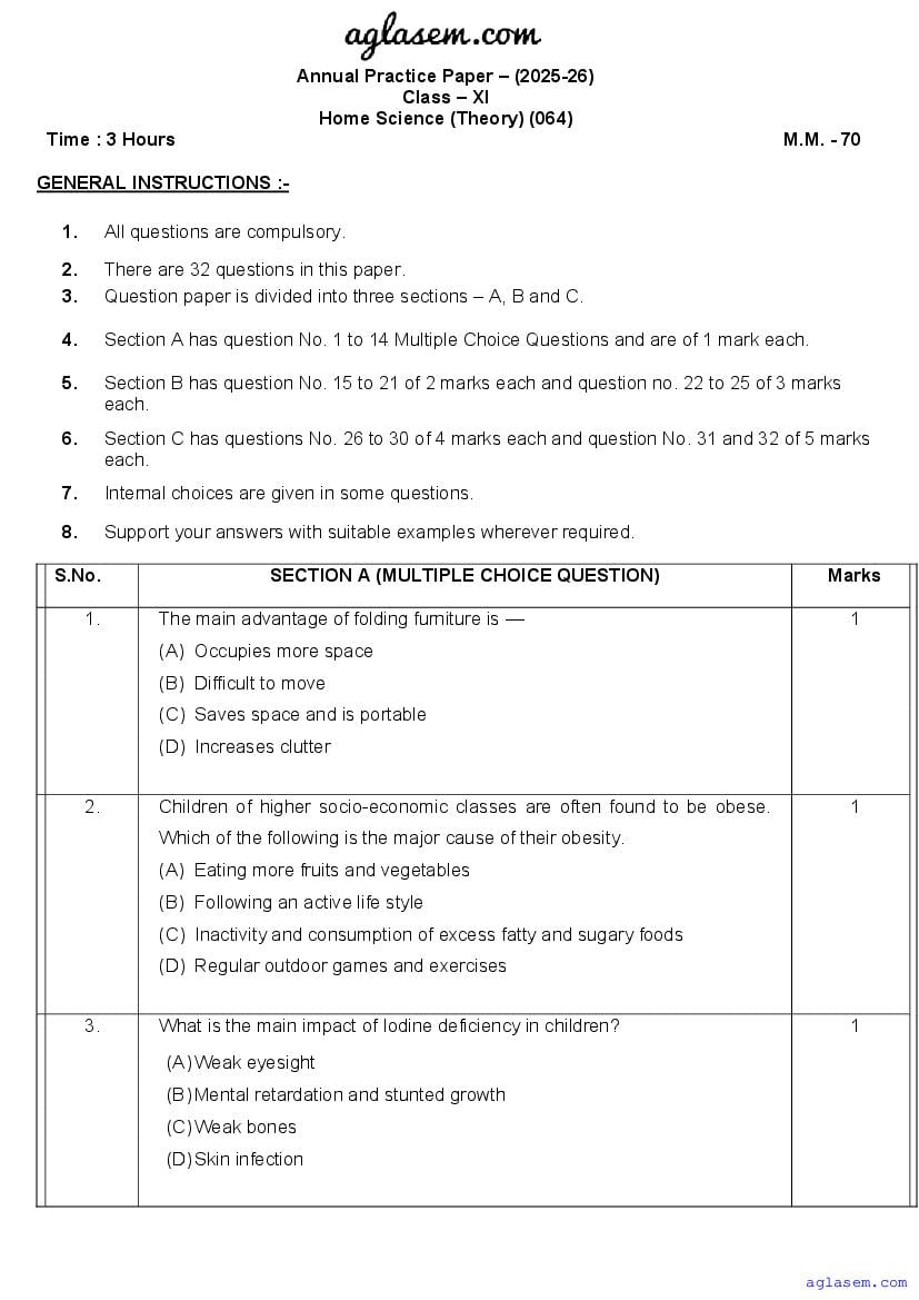 | AglaSem Paper | Class 11 Sample Paper of Home Science |