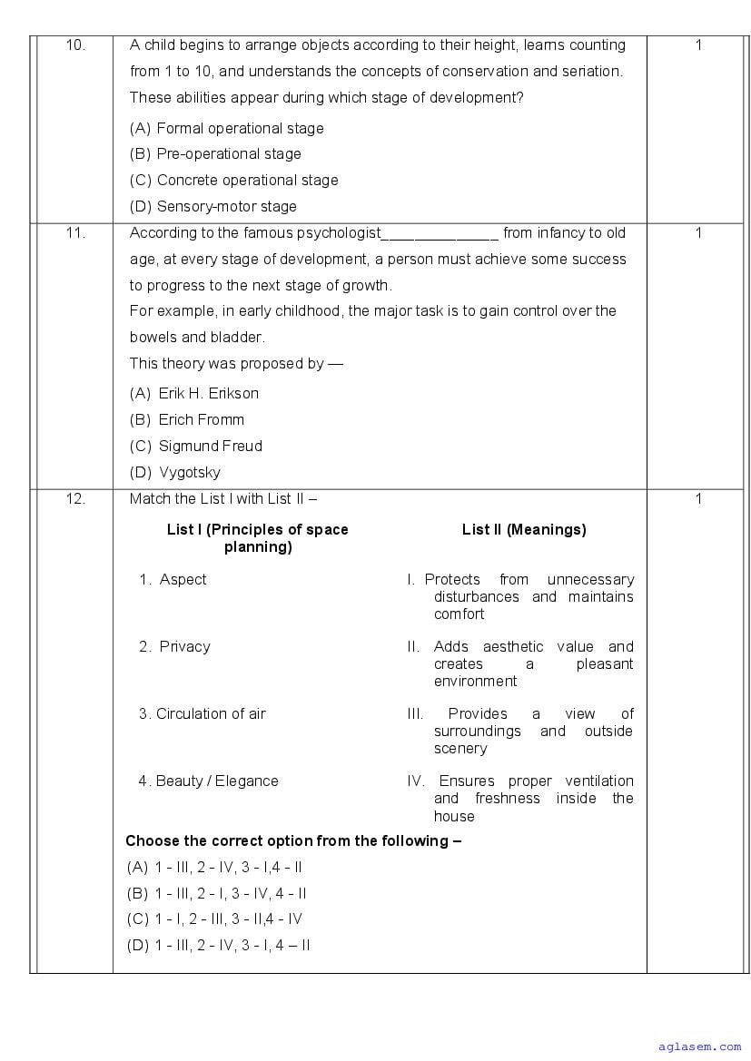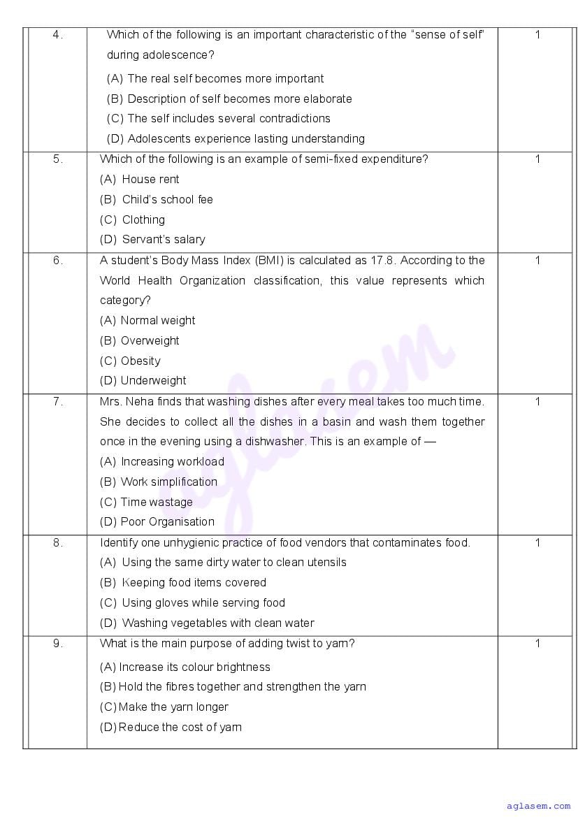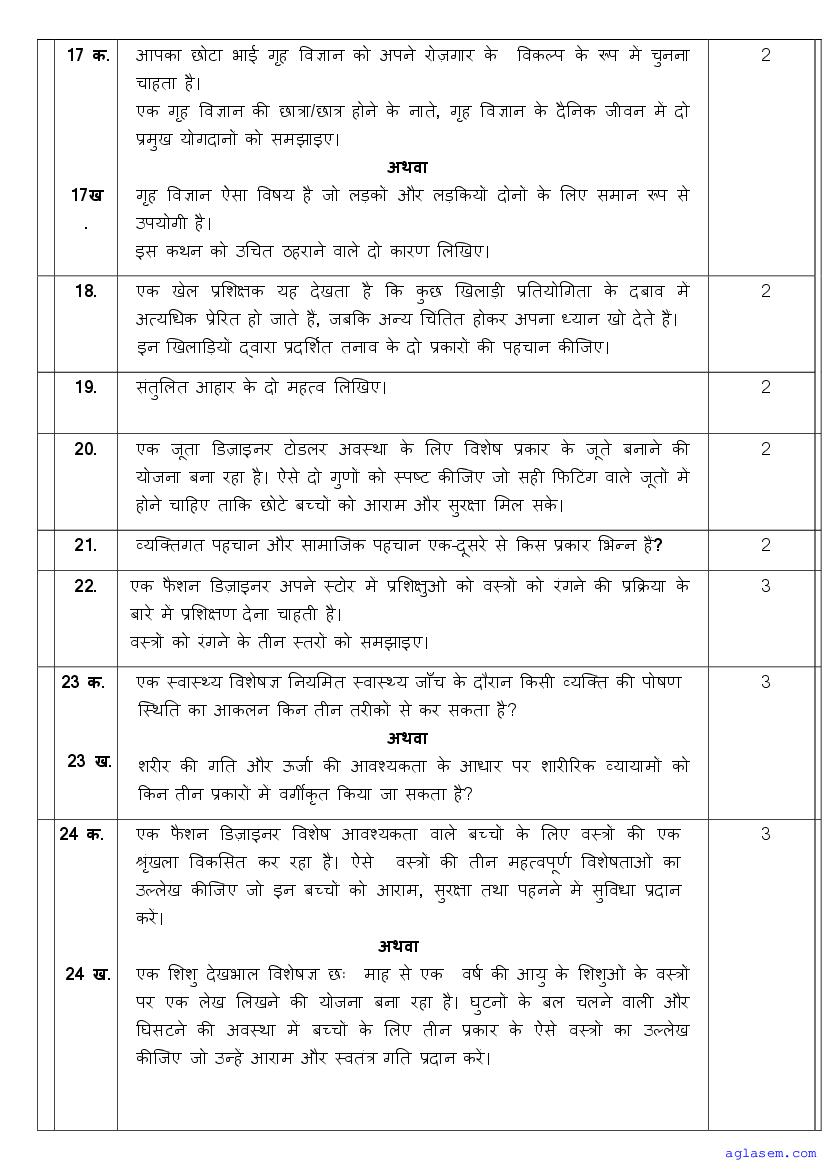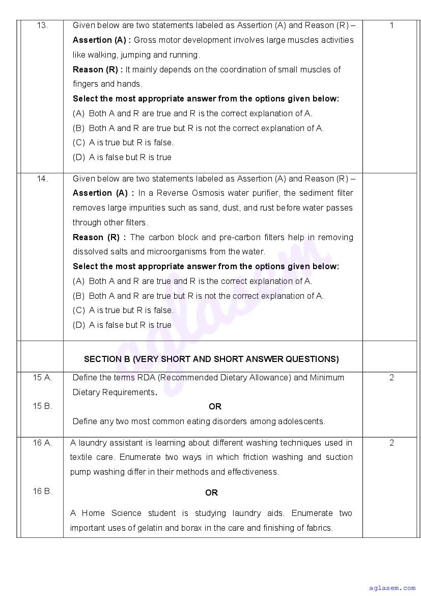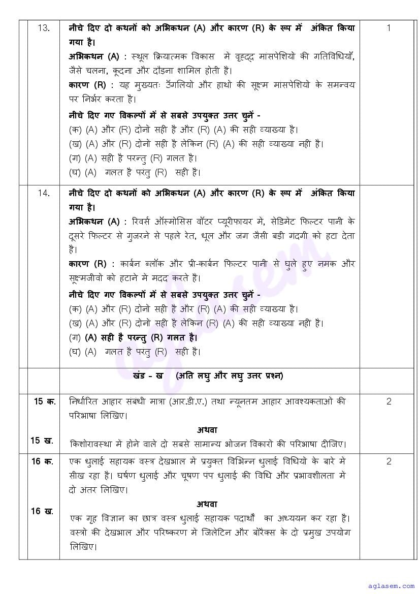 | AglaSem Paper | Class 11 Sample Paper of Home Science |